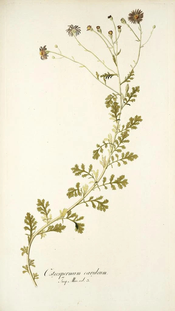 Nikolaus Joseph Freiherr von Jacquin, botanico e artista del XVIII secolo, ha saputo unire scienza e arte nelle sue opere. Formato all'università di Vienna, è stato influenzato dalle scoperte botaniche della sua epoca, in particolare durante i suoi viaggi in Sud America e alle Antille. Le sue illustrazioni, come "Osteospermum caeruleum", testimoniano la sua attenzione ai dettagli e la passione per la natura. In qualità di membro dell'Accademia delle Scienze, Jacquin ha contribuito all'avanzamento delle conoscenze botaniche lasciando un'eredità artistica inestimabile, rendendolo una figura emblematica del periodo delle Illuminazioni.