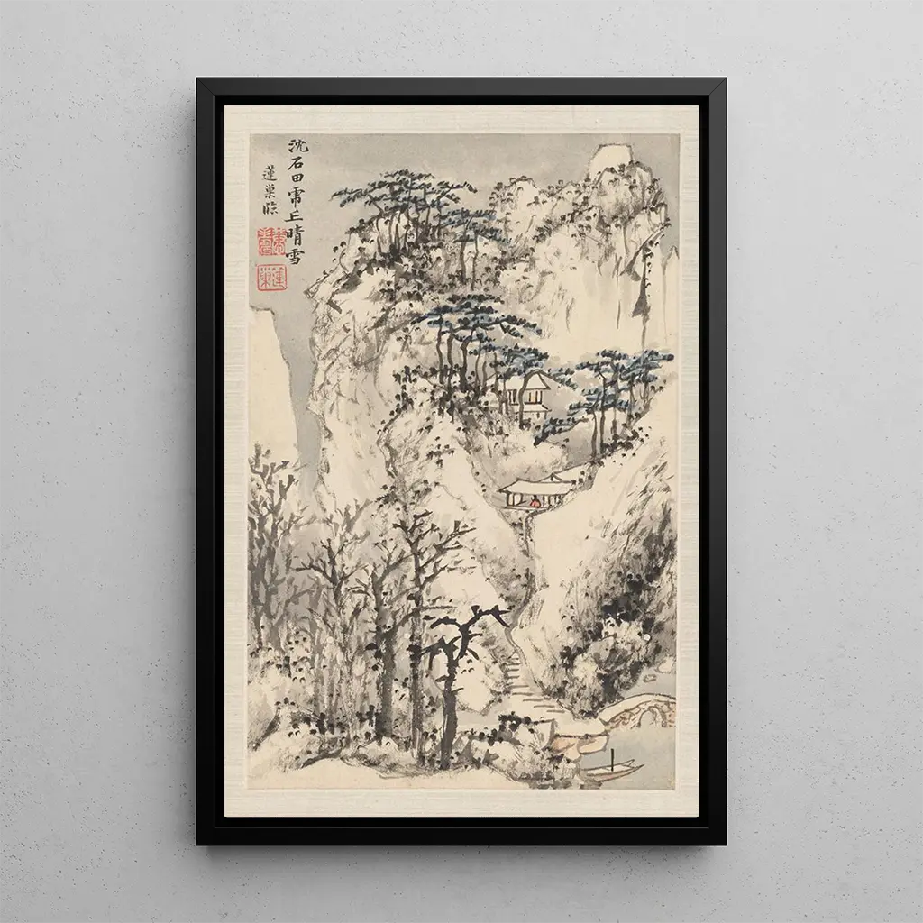 La stampa d'arte "Paysages d'après les anciens maîtres Pl8" nous transporte dans un monde où la natura è celebrata con grande raffinatezza. Le tonalità morbide e i dettagli minuziosi degli alberi e delle montagne creano un'atmosfera di tranquillità. La tecnica di pittura ad inchiostro, caratteristica dell'arte tradizionale cinese, conferisce a questa tela una profondità e una texture che catturano lo sguardo. Ogni colpo di pennello sembra raccontare una storia, invitando lo spettatore a esplorare i misteri di questo paesaggio incantato.