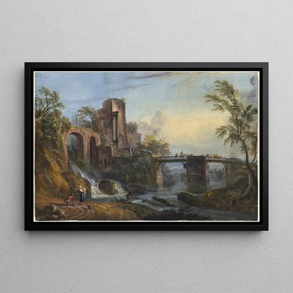 Paysage à l'aube avec ruines classiques : un'harmonie tra natura e storia La stampa d'arte di Paysage à l'aube avec ruines classiques di Jean-Baptiste Lallemand ci trasporta in un mondo in cui la bellezza naturale incontra i resti del passato. Quest'opera rappresenta un paesaggio sereno, immerso in delicate tonalità pastello, dove la luce morbida dell'alba illumina le rovine antiche. I dettagli minuziosi degli elementi architettonici, associati alla vegetazione circostante, creano un'atmosfera di tranquillità e contemplazione. Lallemand riesce a catturare la magia di un momento fugace, invitando lo spettatore a immergersi in questa scena poetica. Jean-Baptiste Lallemand: un maestro del paesaggio neoclassico Jean-Baptiste Lallemand, pittore francese del XVIII secolo, è riconosciuto per i suoi paesaggi ispirati dal neoclassicismo. Influenzato dai grandi maestri della pittura italiana, Lallemand ha saputo unire la rigorosità delle forme classiche a una sensibilità romantica. Le sue opere, spesso intrise di malinconia, riflettono una fascinazione per l'antichità e la natura. In qualità di artista del periodo neoclassico, ha contribuito a plasmare la visione estetica del suo tempo, celebrando la bellezza dei paesaggi mentre evocava i ricordi di un'epoca trascorsa. Una riproduzione decorativa con molteplici virtù La riproduzione di Paysage à l'aube avec ruines classiques è una scelta perfetta per abbellire la vostra casa, sia nel soggiorno, in ufficio o in camera da letto. La sua estetica raffinata e la palette di colori rilassanti portano un tocco di eleganza in qualsiasi spazio. La qualità della stampa d'arte garantisce fedeltà ai dettagli dell'opera originale, permettendo di apprezzare la bellezza senza tempo di questa scena. Integrando questa opera nella vostra decorazione, create un ambiente ispirante, propizio alla riflessione e all'evasione.