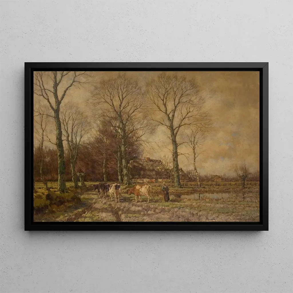 Arnold Marc Gorter, pittore olandese del XIX secolo, è riconosciuto per la sua capacità di catturare la bellezza dei paesaggi del suo paese. Influenzato dal movimento realista, si inserisce in una tradizione artistica che valorizza la rappresentazione fedele della natura. Gorter è stato anche influenzato dalla scuola di L'Aia, che promuoveva l'osservazione diretta delle scene della vita quotidiana. Le sue opere, spesso intrise di luce e colore, testimoniano un profondo rispetto per l'ambiente rurale e la vita degli agricoltori. Questa stampa d'arte, come molte altre, illustra il suo impegno a immortalare la bellezza dei paesaggi olandesi.