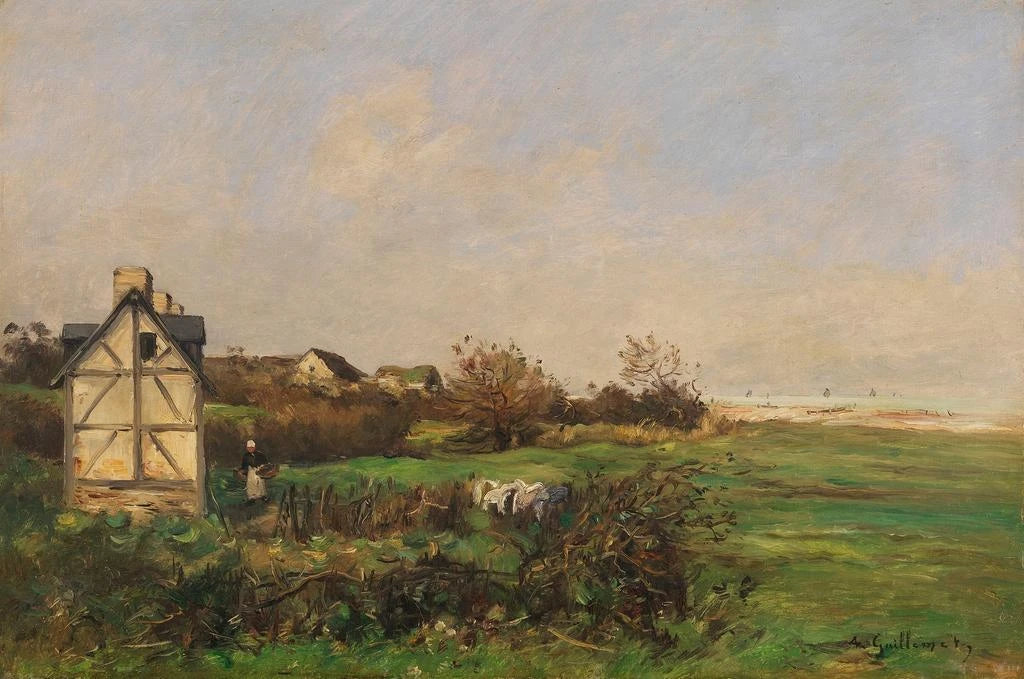 Paesaggio con casa a graticcio e contadina - Antoine Guillemet