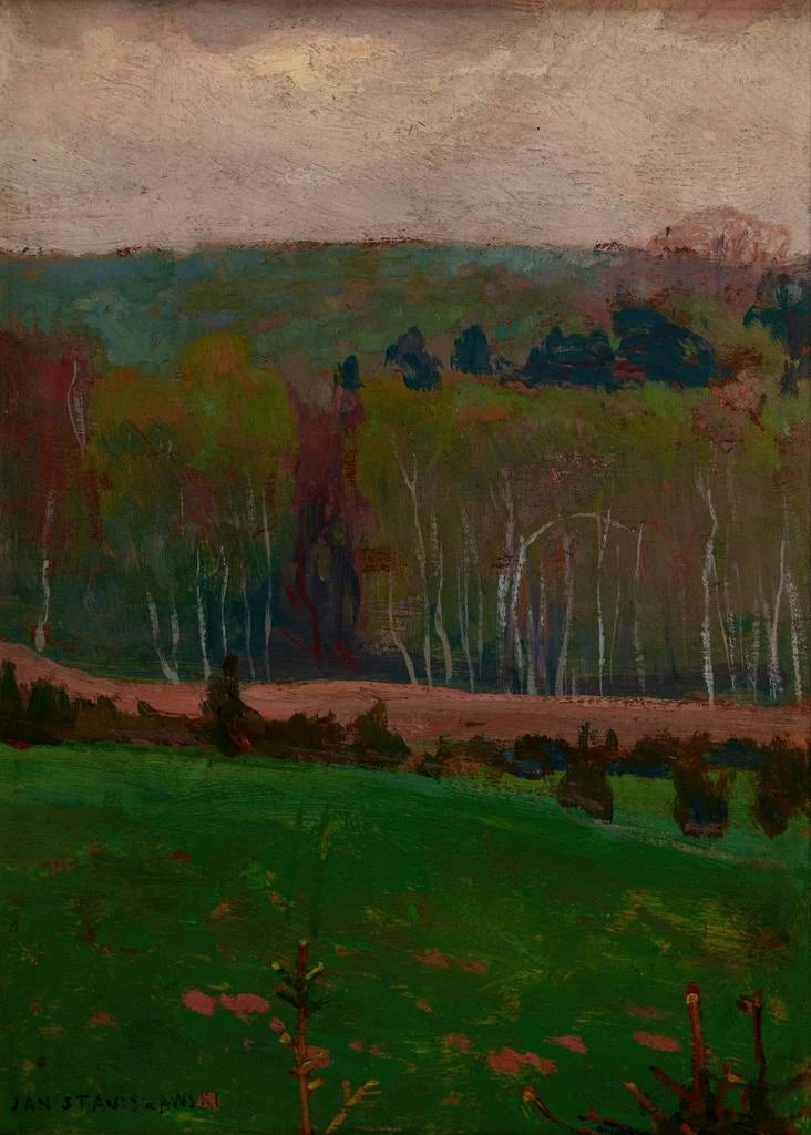 Jan Stanisławski, nato nel 1860, è una figura emblematica dell'impressionismo polacco, riconosciuto per la sua capacità di catturare la luce e i colori della natura. Influenzato dai grandi maestri europei, ha saputo sviluppare uno stile unico che combina osservazione accurata e interpretazione personale. Attivo alla fine del XIX secolo e all'inizio del XX, ha svolto un ruolo cruciale nell'evoluzione dell'arte in Polonia, introducendo tecniche moderne e incoraggiando una nuova generazione di artisti. La sua opera, allo stesso tempo intima e universale, testimonia di una profonda connessione con il paesaggio polacco.