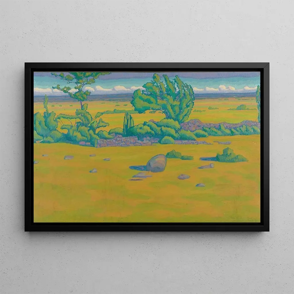 Paesaggio : una fuga verso la natura selvaggia In questa stampa d'arte dell'opera "Paesaggio", Helge Johansson ci trasporta nel cuore di una natura vibrante e serena. I colori ricchi e vari, che vanno dal verde lussureggiante al blu calmante, creano un'atmosfera di tranquillità. La tecnica di Johansson, che combina abilmente il realismo con un tocco di impressionismo, permette agli spettatori di percepire la dolcezza della luce sul paesaggio. Ogni dettaglio, dagli alberi maestosi ai riflessi nell'acqua, invita a una contemplazione profonda, come se si potesse quasi sentire il sussurro del vento tra le foglie. Helge Johansson : un maestro del paesaggio scandinavo Helge Johansson, artista scandinavo del XX secolo, è riconosciuto per la sua capacità di catturare la bellezza grezza della natura. Influenzato dai paesaggi della sua infanzia in Svezia, ha sviluppato uno stile unico che unisce tradizione e modernità. Le sue opere, spesso intrise di malinconia, riflettono una profonda connessione con il suo ambiente. Johansson è riuscito a imporsi nel mondo dell'arte grazie alla sua tecnica raffinata e al suo acuto senso dell'osservazione. Il suo lavoro è una testimonianza dell'importanza della natura nell'arte, e ha ispirato molti artisti contemporanei a esplorare temi simili. Un acquisto decorativo con molteplici vantaggi La stampa d'arte del quadro "Paesaggio" di Helge Johansson è un pezzo decorativo ideale per arricchire il vostro interno. Che sia in un soggiorno, in uno studio o in una camera da letto, questa tela porterà un tocco di serenità ed eleganza nel vostro spazio. La qualità di stampa garantisce una fedeltà notevole ai colori e ai dettagli dell'opera originale, rendendo ogni sguardo sulla stampa un'esperienza visiva coinvolgente. Con il suo fascino estetico, questa stampa d'arte si integra armoniosamente in vari stili di decorazione, rendendola una scelta saggia per gli appassionati d'arte e di natura.