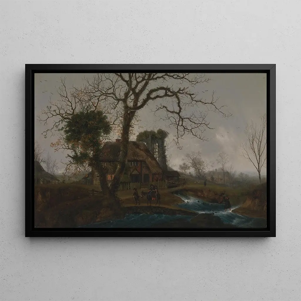 George Smith, attivo nel XIX secolo, è riconosciuto per i suoi paesaggi che celebrano la natura nella sua piena magnificenza. Influenzato dal movimento romantico, ha saputo catturare l'essenza delle stagioni e dei paesaggi britannici. Le sue opere, spesso intrise di malinconia, riflettono un profondo rispetto per la natura e una sensibilità alla luce. Smith è stato anche influenzato dai grandi maestri della pittura di paesaggio, integrando elementi del loro stile mentre sviluppava la propria voce artistica. La sua eredità perdura, e "Paesaggio invernale" ne è un esempio emblematico.