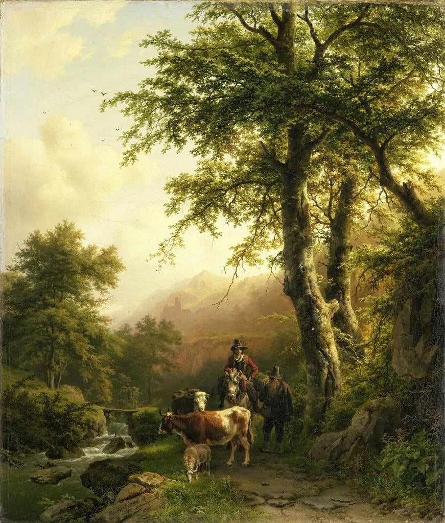 Barend Cornelis Koekkoek, figura emblematica del XIX secolo, è spesso riconosciuto per la sua maestria nel paesaggio. Originario dei Paesi Bassi, ha saputo impregnarsi delle influenze artistiche della sua epoca sviluppando uno stile tutto suo. La sua opera ha particolarmente segnato il movimento romantico, dove la natura è celebrata in tutta la sua magnificenza. Koekkoek si è imposto come un maestro del paesaggio, ispirando numerosi artisti che hanno seguito le sue orme. La sua passione per