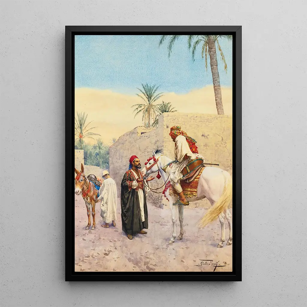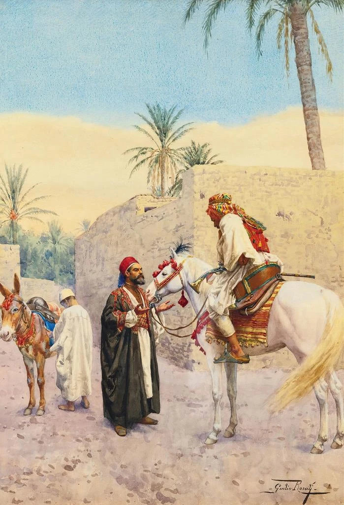 Giulio Rosati, actif au XIXe siècle, est un peintre italien dont les œuvres se distinguent par leur attention aux détails et leur capacité à capturer l'essence de la vie quotidienne. Influencé par le mouvement orientaliste, il a su intégrer des éléments de cultures variées dans ses créations, rendant hommage à la diversité humaine. Rosati a souvent exploré des thèmes liés à l'intellect et à la culture, comme en témoigne "Mots bien choisis". Cette œuvre illustre non seulement son talent technique, mais aussi son engagement à représenter des moments de réflexion et de créativité, faisant de lui un artiste incontournable de son époque.