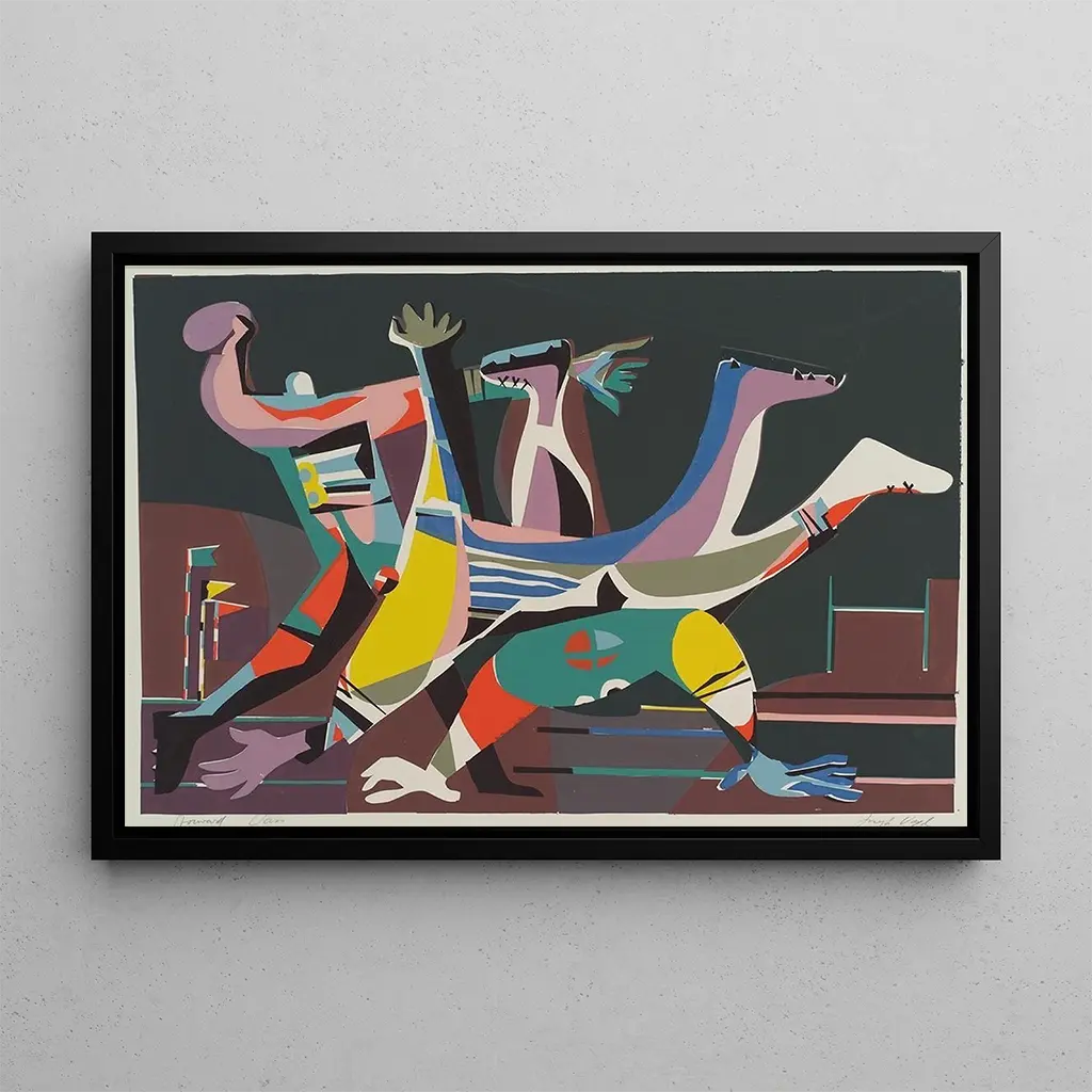 In questa opera vibrante, Joseph Vogel cattura l'essenza del movimento attraverso forme dinamiche e colori vivaci. La tela, ricca di sfumature, evoca una sensazione di fluidità ed energia, come se i personaggi prendessero vita sotto i nostri occhi. I giochi di luce e ombra aggiungono una profondità affascinante, invitando lo spettatore a immergersi in questo universo incantato. Ogni colpo di pennello sembra raccontare una storia, un invito a percepire l'impulso della vita che si dispiega davanti a noi.