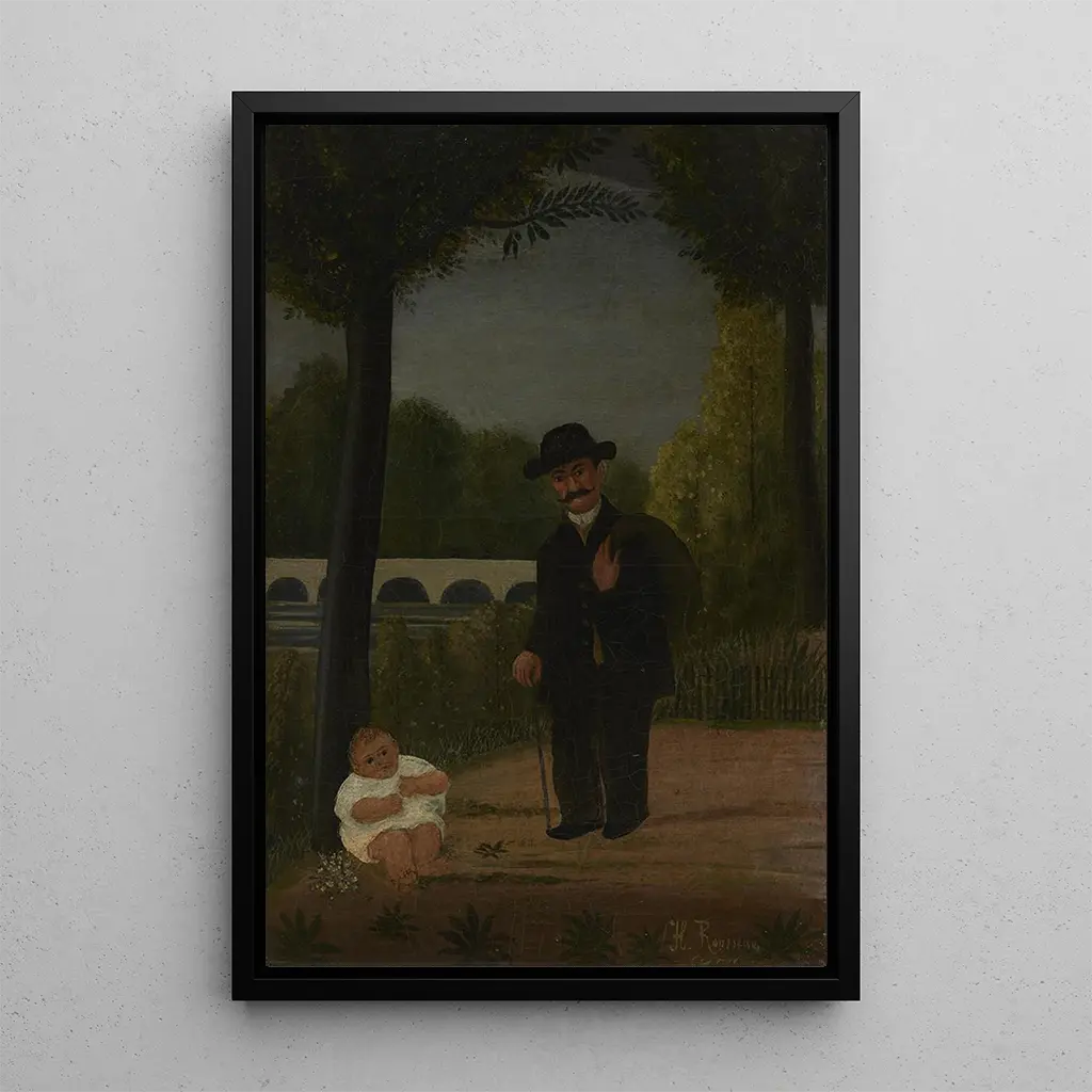 Henri Rousseau, autodidatta e figura emblematica dell'arte naïf, ha saputo imporre il suo stile unico alla fine del XIX secolo. Nato a Laval, ha iniziato a dipingere seriamente dopo aver preso la pensione come doganiere. Influenzato dai saloni artistici e dalle esposizioni della sua epoca, Rousseau ha sviluppato un linguaggio visivo che mescola realismo e immaginazione. Le sue opere, spesso ispirate dalla natura e dalle scene della vita quotidiana, sono state accolte con scetticismo dai critici del suo tempo. Tuttavia, "Promeneur et enfant" illustra perfettamente la sua capacità di catturare momenti semplici con una profondità emotiva, rendendolo un precursore nell'arte moderna.