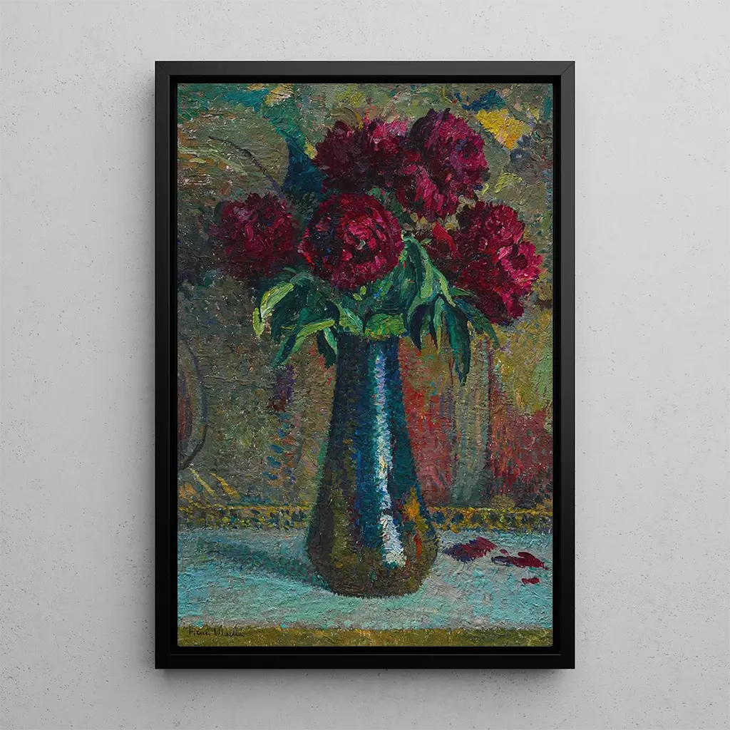 Pivoines rosse in un vaso Dalpayrat: un'esplosione di colori e di vita In "Pivoines rosse in un vaso Dalpayrat", Henri Martin ci immerge in un universo floreale vibrante. I petali delle peonie, di un rosso acceso, sembrano quasi pulsare sotto la luce, mentre il vaso, di una raffinatezza delicata, aggiunge un tocco di eleganza alla composizione. La tecnica impressionista di Martin si manifesta attraverso pennellate audaci, creando un'atmosfera allo stesso tempo dinamica e serena. Le sfumature di verde e di blu che circondano i fiori conferiscono profondità all'opera, invitando lo spettatore ad ammirare ogni dettaglio con meraviglia. Henri Martin: un maestro dell'impressionismo francese Henri Martin, nato nel 1860, è un pittore francese riconosciuto per il suo stile impressionista unico. Influenzato da artisti come Claude Monet e Camille Pissarro, Martin ha saputo sviluppare un approccio personale, mescolando luce e colore con grande maestria. Attivo alla fine del XIX secolo e all'inizio del XX secolo, ha saputo catturare la bellezza della natura e delle scene di vita quotidiana. La sua opera è spesso associata alla regione del Midi in Francia, dove ha trovato una fonte di ispirazione inesauribile. "Pivoines rosse in un vaso Dalpayrat" testimonia il suo talento nell'immortalare la bellezza effimera dei fiori. Una riproduzione decorativa con molteplici vantaggi La riproduzione di "Pivoines rosse in un vaso Dalpayrat" è una scelta ideale per abbellire il vostro interno. Che sia in un soggiorno, in uno studio o in una camera da letto, questa stampa d'arte porta un tocco di freschezza e vitalità. La qualità della riproduzione garantisce fedeltà ai colori e ai dettagli dell'opera originale, rendendo questa tela un vero e proprio elemento decorativo. L'attrattiva estetica di questa stampa impressionista saprà conquistare i vostri ospiti e arricchire il vostro spazio di vita con una nota artistica senza tempo.