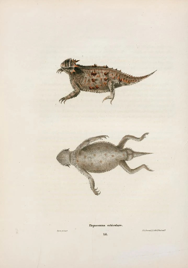 John Edwards Holbrook, naturalista e artista del XIX secolo, ha segnato la sua epoca con i suoi contributi all'illustrazione zoologica. Cresciuto in un ambiente in cui la natura era onnipresente, ha sviluppato una passione per i rettili e gli anfibi. Holbrook è stato influenzato dalle scoperte scientifiche del suo tempo, cercando di unire arte e scienza nelle sue opere. Il suo lavoro ha svolto un ruolo essenziale nella documentazione delle specie americane, rendendolo una figura imprescindibile nel campo della storia naturale. Le sue illustrazioni, come quella del Phrynosome orbiculaire, testimoniano il suo impegno nel catturare la diversità della vita animale.