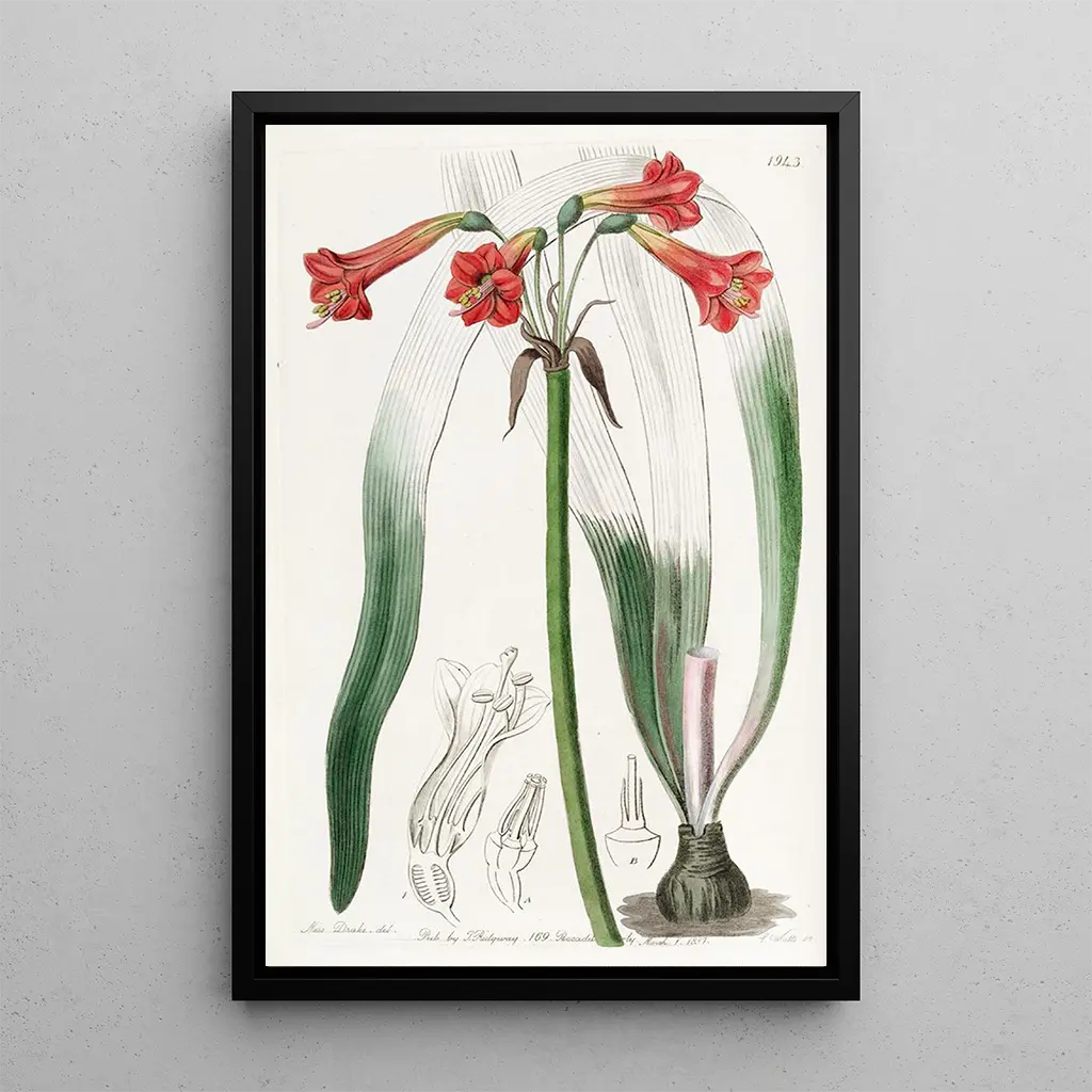 La stampa d'arte di Phycella à tube court rivela una bellezza singolare, dove ogni dettaglio è meticolosamente riprodotto. Le tonalità delicate di questo fiore, che vanno dal rosa pallido al viola, sono valorizzate da contorni precisi e ombre sottili. La tecnica dell'acquarello, padroneggiata da Sydenham Edwards, conferisce a questa opera una leggerezza e una trasparenza che evocano la fragilità della natura. L'atmosfera che si percepisce da questa tela è quella di un giardino rigoglioso, dove la diversità floreale sboccia in una danza armoniosa, invitando all'ammirazione.