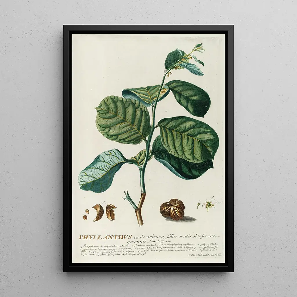 La stampa d'arte di PhylIanthus è una scelta decorativa intelligente per chi desidera portare un tocco di natura nel proprio spazio di vita. Che sia in un soggiorno, in uno studio o in una camera da letto, questa tela si integra armoniosamente con diversi stili di arredamento. La qualità di stampa e la fedeltà ai dettagli originali ne fanno un quadro attraente e coinvolgente. Scegliendo quest'opera, optate per un pezzo che non solo abbellisce il vostro interno, ma suscita anche meraviglia e riflessione sulla bellezza della natura.