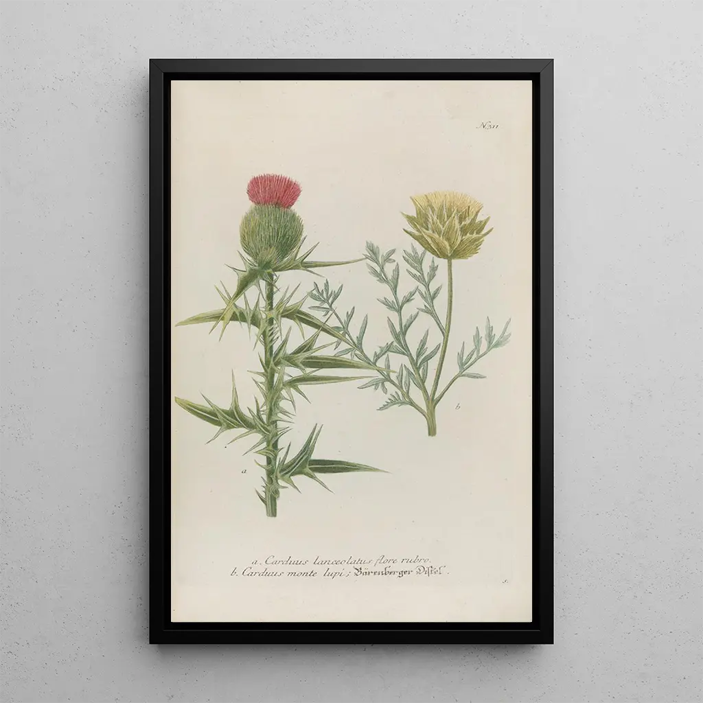 Phytanthoza iconographia Pl034 : un'ode alla diversità vegetale La riproduzione di Phytanthoza iconographia Pl034 ci trasporta in un mondo rigoglioso, dove la varietà di forme e colori delle piante viene messa in risalto. Quest'opera, realizzata con una tecnica di incisione accurata, presenta esemplari botanici dai dettagli sorprendenti, rivelando la bellezza nascosta della flora. Le tonalità vivaci e le texture delicate creano un'atmosfera vivace, invitando all'ammirazione e alla scoperta. Ogni pianta è rappresentata con cura, testimonianza di una passione per la botanica e di un profondo rispetto per la natura. Johann Wilhelm Weinmann : l'arte al servizio della scienza Johann Wilhelm Weinmann, attivo nel XVIII secolo, è riconosciuto come un pioniere nel campo dell'illustrazione botanica. La sua opera, Phytanthoza iconographia, si distingue per il suo approccio scientifico e artistico, unendo precisione ed estetica. Influenzato dalle esplorazioni botaniche della sua epoca, Weinmann è riuscito a catturare l'essenza delle piante esotiche, contribuendo così alla conoscenza botanica del suo tempo. Il suo lavoro è una testimonianza dell'interazione tra arte e scienza, riflettendo un'epoca in cui la curiosità per il mondo naturale era in pieno fermento. Un acquisto decorativo con molteplici vantaggi La riproduzione di Phytanthoza iconographia Pl034 è una scelta decorativa che si adatta a diversi ambienti, che si tratti di un soggiorno, di uno studio o di una camera da letto. La qualità di stampa e la fedeltà alle opere originali ne fanno un elemento decorativo attraente che saprà conquistare i vostri visitatori. Aggiungendo questa stampa alla vostra decorazione, portate un tocco di raffinatezza ed eleganza, celebrando allo stesso tempo la bellezza della natura. Con i suoi colori vivaci e i dettagli raffinati, questa tela arricchisce il vostro spazio vitale, creando un'atmosfera calda e accogliente.