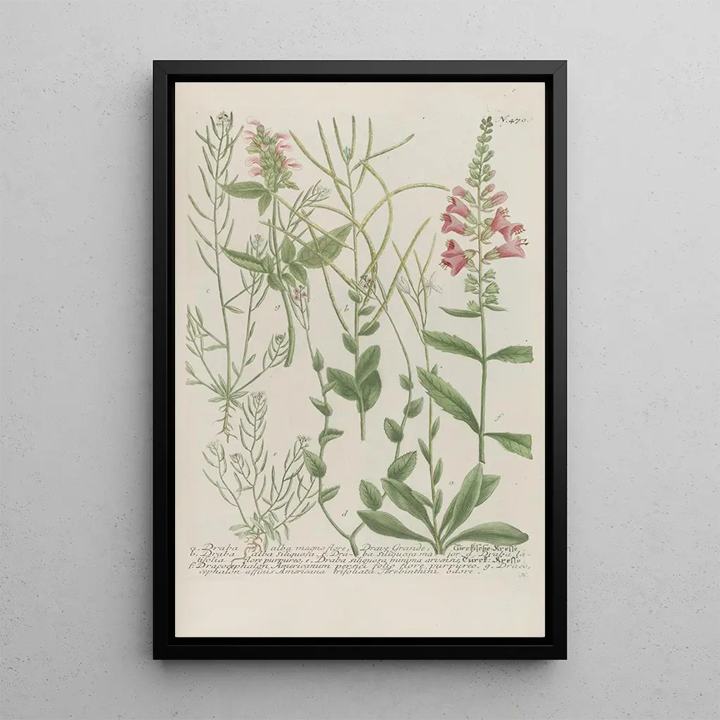 La stampa d'arte di Phytanthoza iconographia Pl193 ci immerge in un affascinante universo botanico, dove ogni dettaglio è meticolosamente valorizzato. I colori vivaci delle piante, che vanno dai verdi brillanti alle tonalità più delicate, creano un'atmosfera al tempo stesso serena e dinamica. La tecnica di incisione utilizzata da Johann Wilhelm Weinmann permette di catturare la delicatezza dei petali e la complessità delle foglie, offrendo un invito all'esplorazione della natura. Questo quadro, vera ode alla flora, evoca un senso di pace e armonia, perfetto per abbellire uno spazio abitativo.