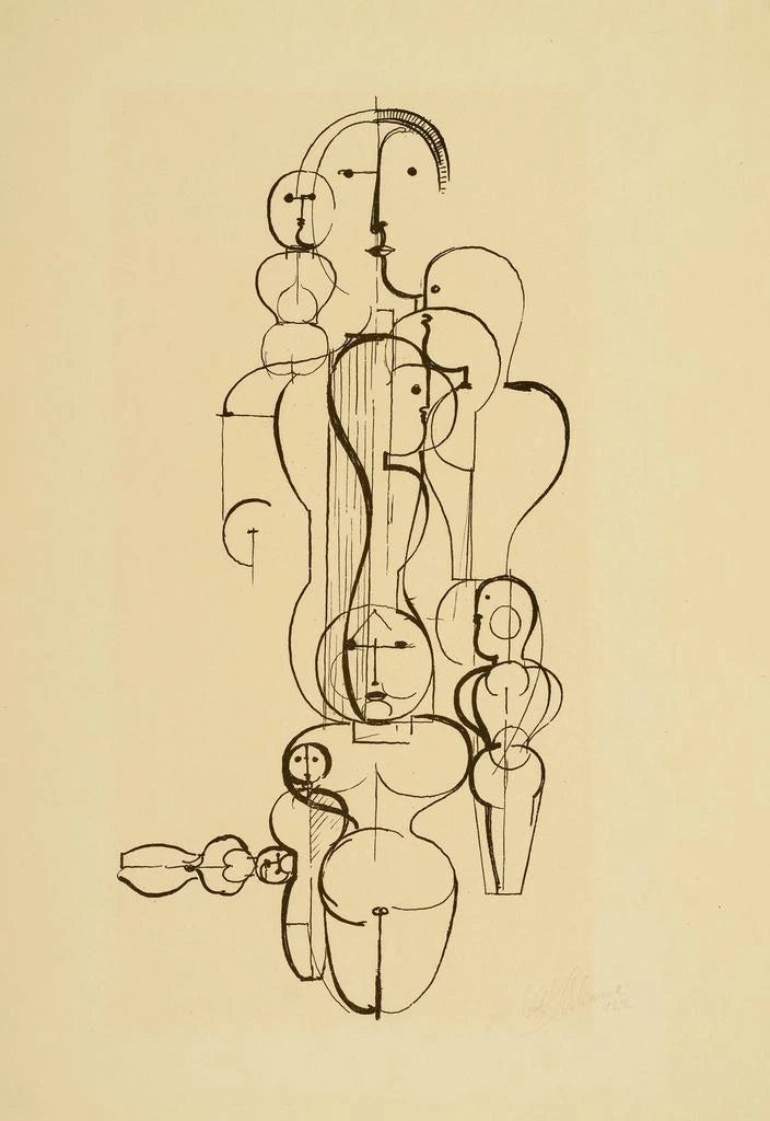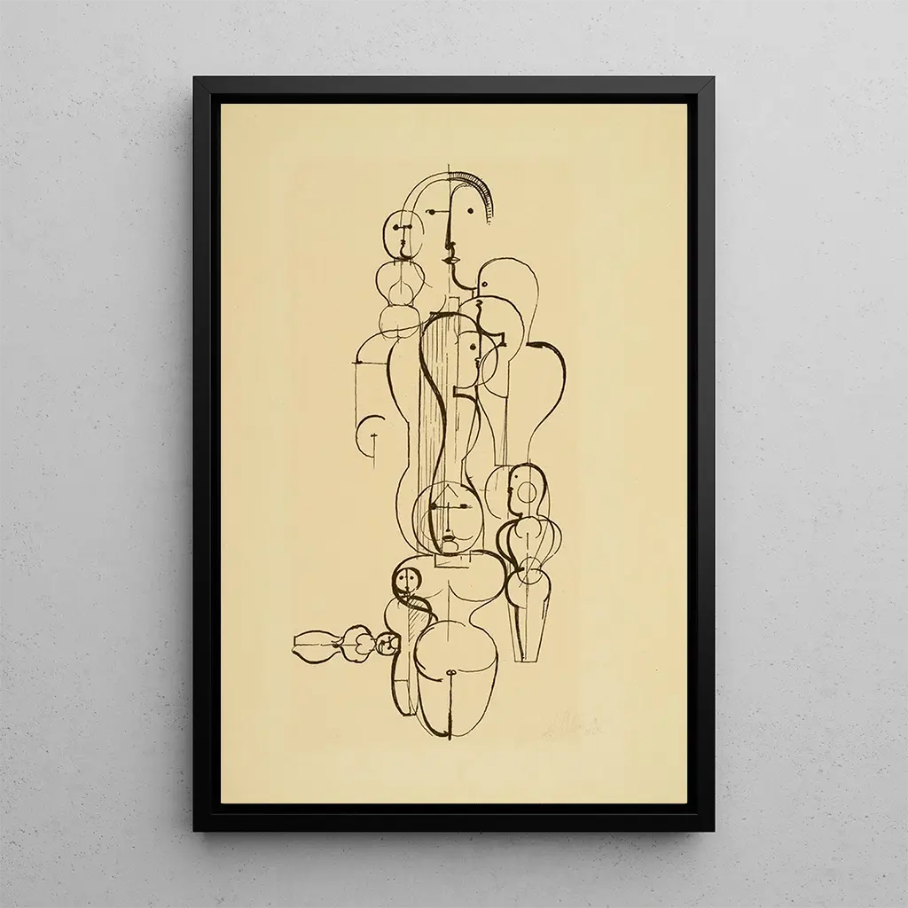 Oskar Schlemmer, figura emblematica del movimento Bauhaus, ha segnato la storia dell'arte con il suo approccio innovativo alla forma e al colore. Nato nel 1888 in Germania, è stato influenzato dai movimenti d'avanguardia della sua epoca, in particolare il cubismo e il futurismo. Schlemmer ha saputo unire il suo amore per la danza e il teatro alla passione per la pittura, creando così opere che interrogano la percezione e l'interazione umana. "Plan de groupe concentrique K1" si inserisce in un periodo in cui l'arte cercava di liberarsi dalle convenzioni, e Schlemmer, con il suo stile unico, ha contribuito a ridefinire i confini dell'arte visiva.