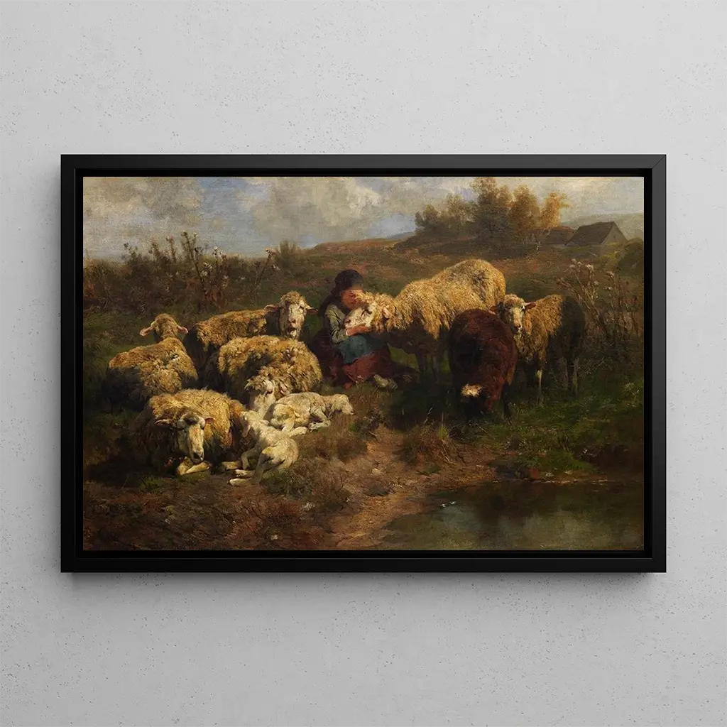 Piccola pastorella con pecore: una scena bucolica intrisa di dolcezza In "Piccola pastorella con pecore", Anton Braith ci immerge in un universo pastorale dove regna la serenità. La composizione, attentamente orchestrata, mette in evidenza una giovane pastorella circondata dalle sue pecore, catturando la bellezza semplice della vita rurale. I colori morbidi e naturali, che vanno dai verdi rilassanti ai marroni caldi, creano un'atmosfera di tranquillità. La tecnica di Braith, che mescola realismo e impressionismo, dà vita a ogni dettaglio, dai tratti delicati del volto della pastorella alle texture del mantello delle pecore. Quest'opera invita alla contemplazione e a un'evasione verso paesaggi idealizzati. Anton Braith: un maestro del realismo pastorale Anton Braith, pittore tedesco del XIX secolo, è riconosciuto per le sue rappresentazioni della vita rurale e degli animali. Influenzato dal movimento romantico, ha saputo catturare l'armonia tra l'uomo e la natura. La sua carriera si estende per diversi decenni, durante i quali ha prodotto numerose opere che celebrano la bellezza dei paesaggi e delle scene di vita quotidiana. "Piccola pastorella con pecore" si inserisce in un periodo in cui l'artista cercava di esprimere la semplicità e la purezza della vita in campagna. I suoi dipinti, spesso intrisi di nostalgia, testimoniano un'epoca in cui la natura era al centro delle preoccupazioni artistiche. Un acquisto decorativo con molteplici vantaggi Optare per la riproduzione di "Piccola pastorella con pecore" è una scelta saggia per abbellire il vostro interno. Che si tratti di un soggiorno, di un ufficio o di una camera da letto, questa stampa d'arte aggiunge un tocco di dolcezza e serenità. La qualità della riproduzione garantisce fedeltà ai colori e ai dettagli dell'opera originale, offrendo allo stesso tempo un'attrattiva estetica indiscutibile. Integrando questa tela nella vostra decorazione, portate un pezzo di natura e tranquillità nella vostra casa, creando uno spazio rilassante e ispirante per tutti i vostri momenti di vita.