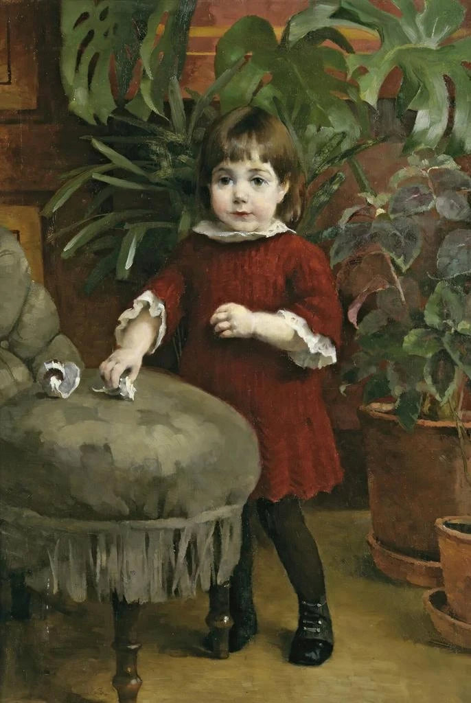 In "Petite Gudrun", Helene Schjerfbeck cattura l'innocenza e la dolcezza di una giovane ragazza attraverso una palette di colori delicate. Le sfumature di rosa e di blu si mescolano armoniosamente, creando un'atmosfera intima e sognante. La tecnica di Schjerfbeck, caratterizzata da colpi di pennello precisi e da un'attenzione minuziosa ai dettagli, permette di trasmettere un'emozione palpabile. Lo sguardo di Gudrun, allo stesso tempo curioso e pensieroso, invita lo spettatore a immergersi nel suo mondo interiore, offrendo una riflessione sull'infanzia e sulla vulnerabilità.