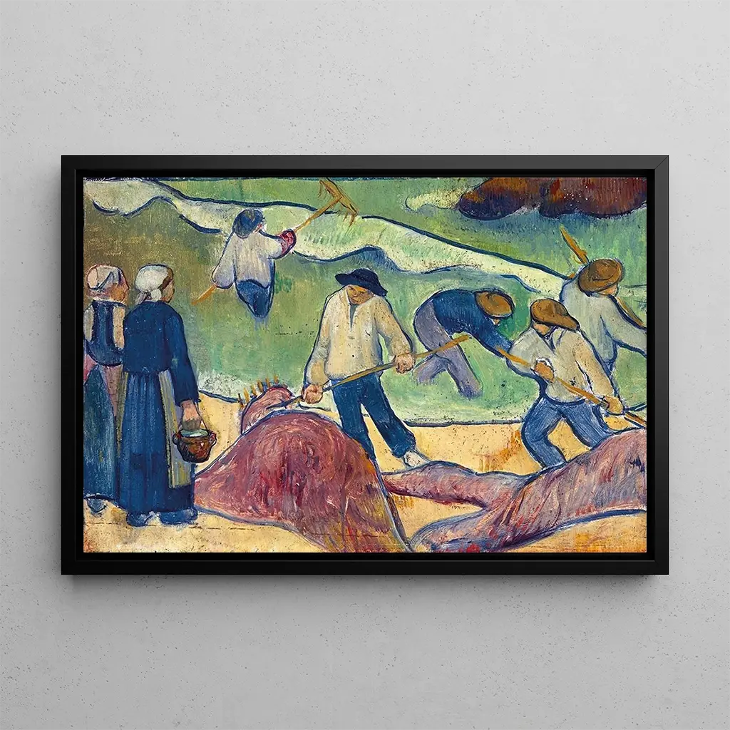 Paul Sérusier, membro fondatore del movimento nabi, ha segnato la storia dell'arte all'inizio del XX secolo. Influenzato dalle opere di Gauguin e dalle idee del synthétisme, ha cercato di esprimere emozioni attraverso forme semplificate e colori puri. Il suo lavoro, sebbene meno conosciuto di quello dei suoi contemporanei, ha svolto un ruolo cruciale nell'evoluzione dell'arte moderna. Questa stampa d'arte di Piccolo paesaggio con pescatori di alghe, realizzata nel 1890, testimonia questa ricerca di una nuova estetica, in cui l'arte diventa un'espressione personale e spirituale, lontano dalle convenzioni accademiche.