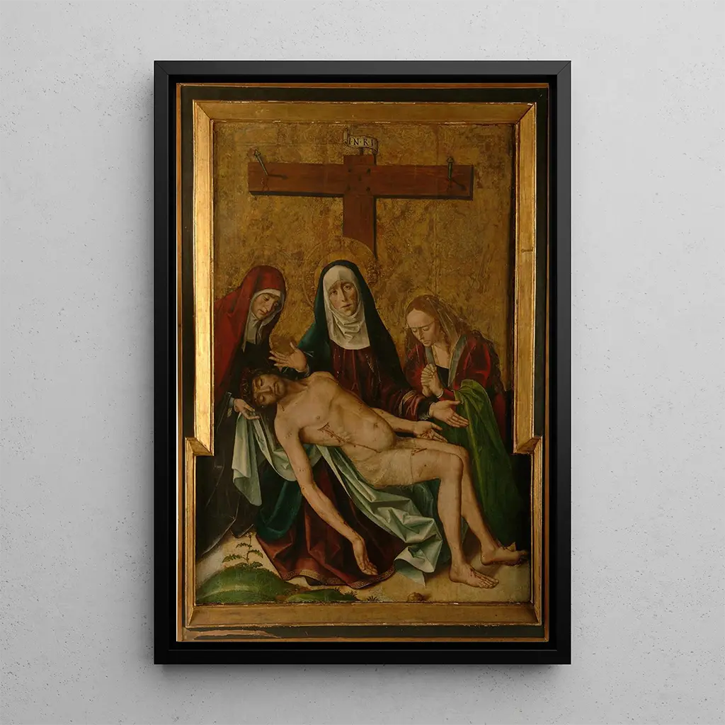 La Piéta di Pedro Berruguete è un'opera che evoca un'emozione profonda attraverso la rappresentazione toccante della Vergine Maria che tiene il corpo del suo figlio, Gesù. I dettagli minuziosi dei volti e dei drappeggi rivelano una padronanza eccezionale della tecnica, mentre la palette di colori scuri accentua il carattere tragico della scena. L'atmosfera dell'opera è intrisa di malinconia, invitando lo spettatore a percepire il dolore e la compassione della madre. Ogni elemento della composizione contribuisce a creare una forte connessione emotiva, rendendo questa stampa d'arte particolarmente toccante.