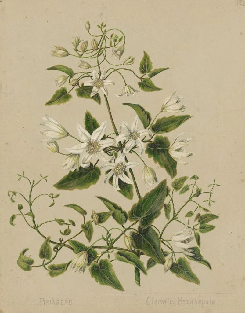 Nella 'Pikiarero Clematis hexasepala', Sarah Featon ci offre una visione poetica di una pianta rampicante tipica della Nuova Zelanda. La sua illustrazione si distingue per dettagli minuziosi e una palette di colori delicati che evocano la raffinatezza di questa specie. Come artista botanica, Featon ha saputo catturare l'essenza della flora locale integrando un senso estetico che trascende la semplice rappresentazione. Quest'opera testimonia l'impegno di Featon verso la botanica e il suo desiderio di condividere la bellezza del suo ambiente. In un contesto contemporaneo, questa illustrazione può portare un tocco di natura ed eleganza, invitando alla serenità. La stampa d'arte di quest'opera è disponibile su Artem Legrand.