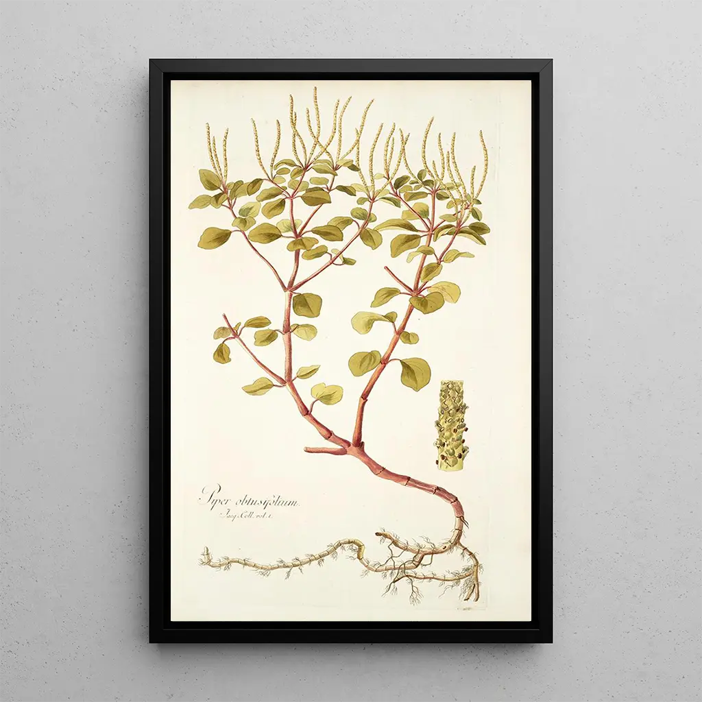 La stampa d'arte di Piper obtusifolium è una scelta decorativa ideale per aggiungere un tocco di verde e di esotismo al vostro interno. Che sia in un soggiorno, in uno studio o in una camera da letto, questo quadro si integra armoniosamente in vari stili di arredamento, dal contemporaneo al classico. La qualità di stampa garantisce fedeltà ai colori e ai dettagli dell’opera originale, offrendo al contempo un indubbio fascino estetico. Scegliendo questa tela, non solo abbellite il vostro spazio, ma portate anche un pezzo di natura all’interno, creando così un’atmosfera rilassante e ispirante.