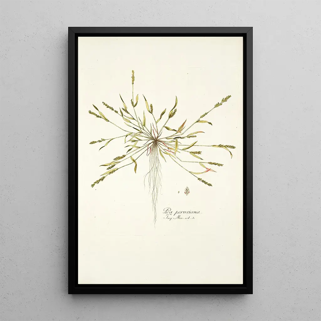 Scegliere la stampa d'arte di Poa peruviana significa optare per un pezzo decorativo che arricchisce il vostro spazio di vita. Che sia in un soggiorno, in uno studio o in una camera da letto, questa opera porta un tocco di freschezza e natura. La qualità della riproduzione garantisce fedeltà ai dettagli e ai colori dell’opera originale, permettendo di apprezzare appieno la bellezza di questa pianta. Con il suo fascino estetico, questa tela diventa un elemento centrale della vostra decorazione, suscitando ammirazione e curiosità. Un’acquisizione che unisce arte e natura, per un interno ispirante e rilassante.