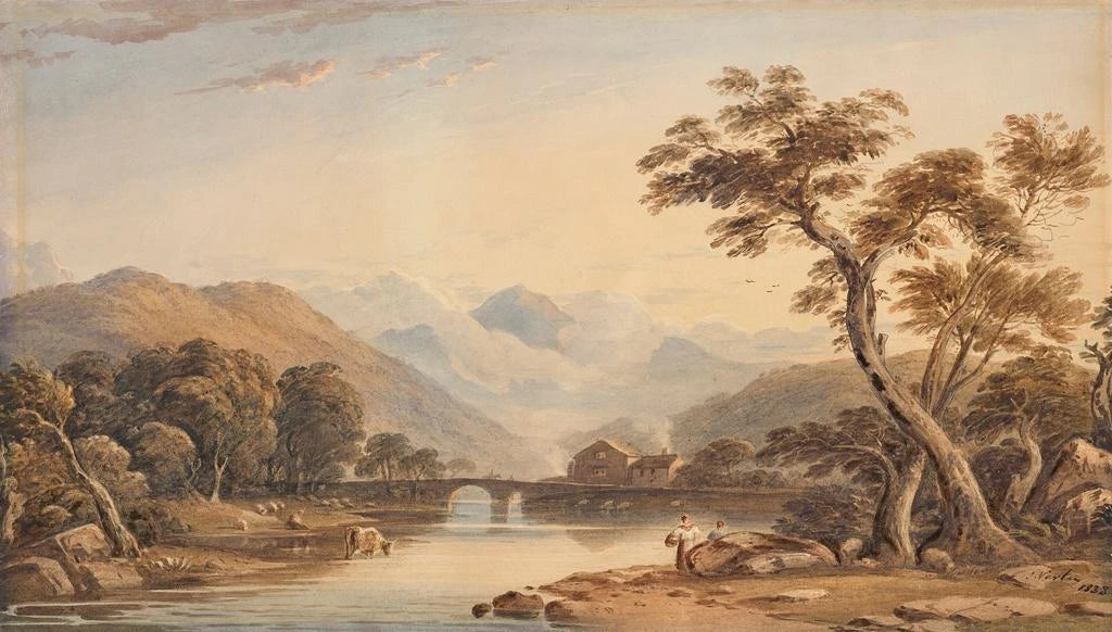 Ponte di Beddgelert con Snowdon in lontananza - John Varley