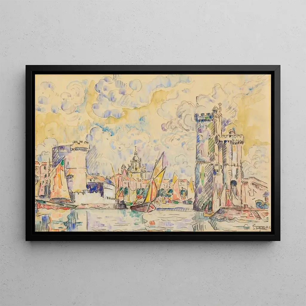 Port de La Rochelle : una scena marittima vibrante La stampa d'arte "Port de La Rochelle" di Paul Signac cattura l'effervescenza di un porto animato, dove le vele bianche delle barche si mescolano ai riflessi scintillanti dell'acqua. I colori vivaci e audaci, tipici dello stile pointilliste, infondono un'energia dinamica alla scena. La tecnica di Signac, che consiste nell'applicare tocchi di colore juxtaposés, crea un'atmosfera vibrante e luminosa, invitando lo spettatore a percepire il movimento e la vita che emanano da questo luogo emblematico. Ogni dettaglio, dai moli alle barche, è una celebrazione della vita marittima. Paul Signac : pioniere del neo-impressionismo Paul Signac, figura emblematica del neo-impressionismo, ha svolto un ruolo cruciale nell'evoluzione dell'arte all'inizio del XX secolo. Influenzato da Georges Seurat, ha sviluppato il suo approccio alla stampa d'arte del pointillisme, esplorando gli effetti del colore e della luce. Attivo nel movimento artistico a Parigi, Signac è stato anche un fervente difensore della libertà artistica. La sua opera, caratterizzata da una ricerca costante del colore puro e dell'armonia, ha lasciato un'impronta indelebile nella storia dell'arte, rendendolo un artista imprescindibile della sua epoca. Una acquisizione decorativa con molteplici vantaggi La stampa d'arte del "Port de La Rochelle" è un pezzo decorativo affascinante, ideale per arricchire il vostro spazio di vita. Che sia in un soggiorno, in uno studio o in una camera da letto, questa tela porterà un tocco di dinamicità e colore alla vostra decorazione. La qualità di stampa garantisce una fedeltà eccezionale alle sfumature e ai dettagli dell'opera originale. Scegliendo questa stampa d'arte, invitate l'energia marittima di Signac nel vostro interno, creando così un'atmosfera vivace e artistica, propizia alla creatività e all'ispirazione.