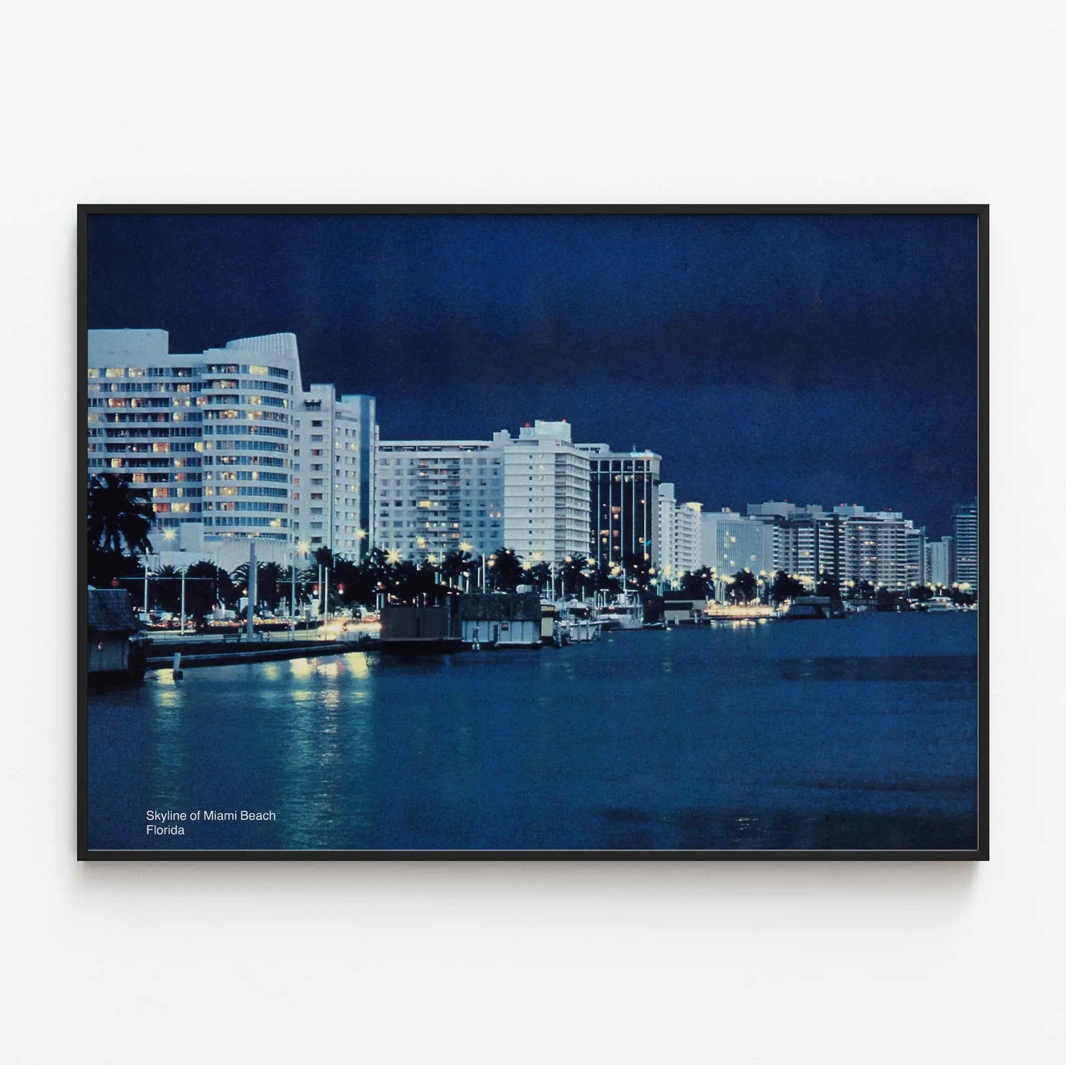 Découvrez ce poster de décoration murale représentant la skyline de Miami Beach en Floride, illuminée à la tombée de la nuit. Cette affiche met en avant les bâtiments modernes et élégants qui bordent la côte, avec leurs lumières chatoyantes se reflétant sur l'eau calme d'un canal ou d'une baie. Parfait pour insuffler une ambiance urbaine et contemporaine à votre intérieur, ce poster offre une scène nocturne apaisante où contraste la profondeur du ciel étoilé avec l’éclat des réverbères et fenêtres éclairées. Cette décoration murale capture l'essence dynamique d'une ville côtière, évoquant sereinement l’atmosphère nocturne d’un lieu où la vie urbaine et la nature s’entrelacent harmonieusement. Les bâtiments aux formes variées et aux teintes blanches et beiges s’alignent dans un perspective élégante, donnant à ce tableau une composition équilibrée et intéressante. Idéal pour un salon, une chambre ou un bureau, ce poster est une invitation à voyager sans quitter votre espace. Il fonctionne parfaitement en tant qu’élément central sur un mur uni ou en complément d'une collection d’affiches thématiques sur les paysages urbains ou les destinations de rêve. En apportant cette décoration murale chez vous, vous renforcez une ambiance moderne et chic, tout en bénéficiant d’un visuel qui évoque à la fois calme et vie citadine. La palette de couleurs dominée par les bleus profonds de la nuit et les éclats chaleureux des lumières crée un équilibre visuel apaisant, qui convient tout particulièrement aux intérieurs contemporains et design. Ce tableau mural peut également inspirer une décoration dans des styles minimalistes, bohèmes ou industriels, grâce à son côté à la fois simple et évocateur. Ce poster est une excellente idée pour les amateurs de villes côtières et de paysages urbains, ou pour ceux qui souhaitent apporter un vent de fraîcheur d’une destination emblématique des États-Unis à leur décoration intérieure.