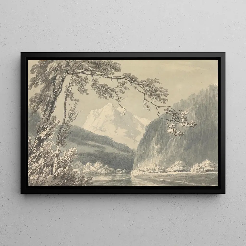 La stampa d'arte Près de Grindelwald di Joseph Mallord William Turner evoca la maestà dei paesaggi alpini. In quest'opera, Turner dipinge un panorama grandioso, dove le montagne si ergono fieramente sotto un cielo drammatico. I colori vibranti, che vanno dai blu profondi agli arancioni vivaci, creano un'atmosfera allo stesso tempo dinamica e serena. La tecnica di Turner, caratterizzata da pennellate audaci e una luce splendente, conferisce a questa tela una profondità sorprendente. Ogni elemento del paesaggio sembra vivo, invitando lo spettatore a esplorare le meraviglie della natura.