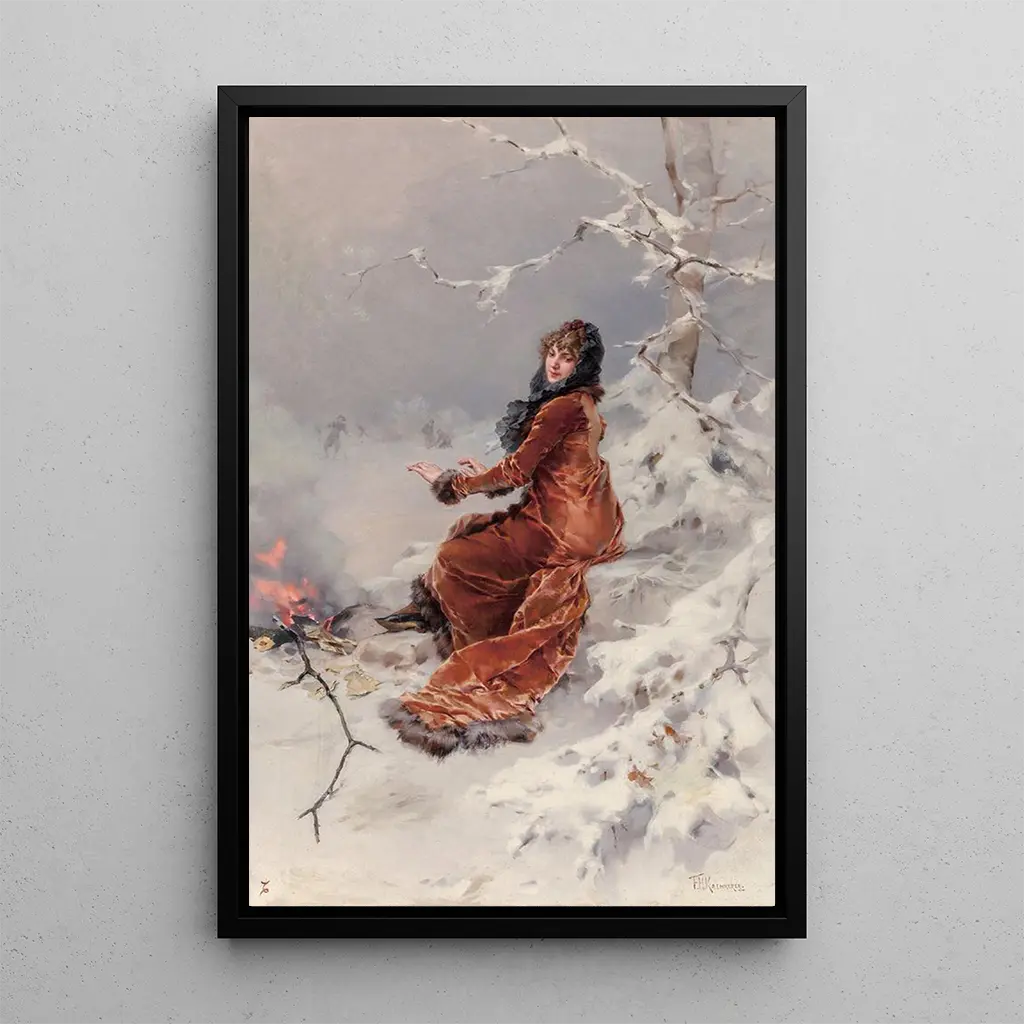 Près de l'Étang de Patinage : une sérénité hivernale La stampa d'arte de Près de l'Étang de Patinage évoque une scène paisible d'hiver, où la glace lisse de l'étang devient le théâtre de joyeuses activités. Les nuances de bleu et de blanc, associées à des touches de couleurs chaudes, créent une atmosphère à la fois calme et festive. Les personnages, habillés de vêtements d'époque, glissent et s'amusent, tandis que les arbres dénudés encadrent ce tableau enchanteur. Cette œuvre transporte le spectateur dans un moment de convivialité, où la nature et l'humanité se rencontrent harmonieusement. Frederik Hendrik Kaemmerer : un témoin de la vie sociale Frederik Hendrik Kaemmerer, peintre néerlandais du XIXe siècle, est connu pour ses représentations de la vie sociale et des paysages. Sa formation artistique, influencée par les maîtres du passé, lui a permis de développer un style unique, mêlant réalisme et romantisme. À travers ses œuvres, il immortalise des scènes de la vie quotidienne, comme celle de Près de l'Étang de Patinage, qui reflète l'esprit de son époque. Kaemmerer a su capturer la beauté des interactions humaines, faisant de lui un artiste essentiel pour comprendre la société de son temps. Une acquisition décorative aux multiples atouts La reproduction de Près de l'Étang de Patinage est un choix décoratif qui apportera une touche de sérénité à votre intérieur. Que ce soit dans un salon, un bureau ou une chambre, cette toile saura créer une ambiance chaleureuse et accueillante. Sa qualité d'impression et sa fidélité aux détails originaux garantissent un attrait esthétique durable. En choisissant ce tableau, vous invitez une scène hivernale apaisante dans votre espace, tout en célébrant l'art et l'histoire à travers les yeux d'un maître du réalisme.