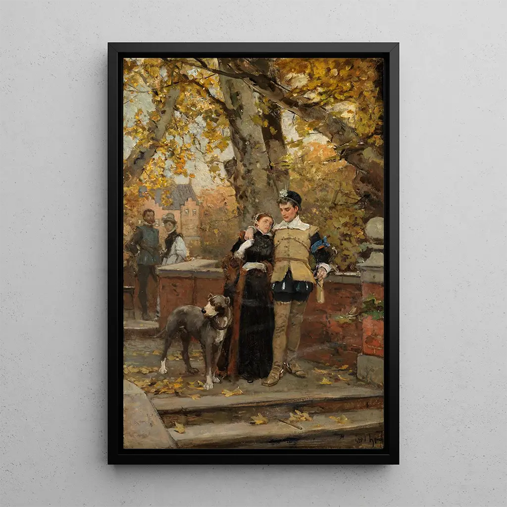 Prima della partenza: un momento sospeso nel tempo In questa opera affascinante, "Prima della partenza", Carl Hoff ci immerge in una scena intima dove i personaggi sembrano congelati in un attimo di riflessione. La composizione è accuratamente orchestrata, mescolando tonalità calde di terracotta e sfumature morbide di blu che evocano un'atmosfera di malinconia e serenità. La tecnica di Hoff, che unisce realismo e impressionismo, permette di percepire l'emozione palpabile dei protagonisti. Ogni dettaglio, dalle espressioni facciali ai drappeggi dei vestiti, contribuisce a creare un'atmosfera allo stesso tempo tenera e nostalgica, invitando lo spettatore a interrogarsi sulla storia che si svolge proprio prima di questa partenza. Carl Hoff: un artista tra tradizione e modernità Carl Hoff, attivo alla fine del XIX secolo e all'inizio del XX secolo, è un pittore danese il cui lavoro si colloca all'incrocio tra realismo e impressionismo. Influenzato dai grandi maestri della sua epoca, Hoff ha saputo sviluppare uno stile unico, caratterizzato da un'attenzione minuziosa ai dettagli e da una palette di colori vibranti. La sua opera riflette le preoccupazioni sociali ed emotive del suo tempo, spesso rappresentando momenti della vita quotidiana. Come artista, ha contribuito all'evoluzione della stampa d'arte scandinava, lasciando un'eredità duratura che continua a ispirare gli artisti contemporanei. Un acquisto decorativo con molteplici vantaggi La riproduzione di "Prima della partenza" è un elemento decorativo ideale per arricchire il vostro interno, sia in un soggiorno, uno studio o una camera da letto. La qualità di stampa garantisce una fedeltà notevole ai colori e ai dettagli dell'opera originale, offrendo così un'attrattiva estetica indiscutibile. Integrando questa stampa d'arte nella vostra decorazione, portate un tocco di eleganza e profondità al vostro spazio, stimolando conversazioni sull'arte e sulle emozioni che essa trasmette. Questa tela non è solo un'aggiunta visiva, ma anche un invito alla contemplazione e alla riflessione sui momenti preziosi della vita.