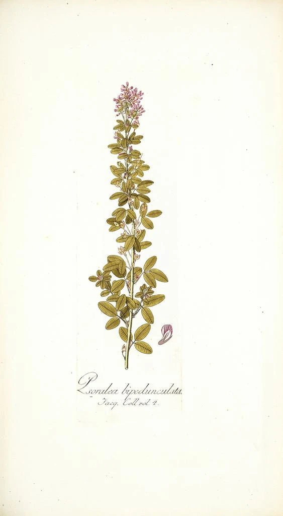 Nikolaus Joseph Freiherr von Jacquin, botanico e artista del XVIII secolo, ha svolto un ruolo essenziale nell’evoluzione dell’illustrazione botanica. Formato all’Università di Vienna, è stato influenzato dai viaggi di esplorazione della sua epoca, in particolare verso le colonie tropicali. Le sue opere, tra cui Psoralea bipedunculata, testimoniano una cura per i dettagli e una passione per la natura che erano rivoluzionarie per il suo tempo. Jacquin non solo ha contribuito alla scienza botanica, ma ha anche aperto la strada a una valorizzazione estetica delle piante, segnando così un passo importante nella storia dell’arte scientifica.
