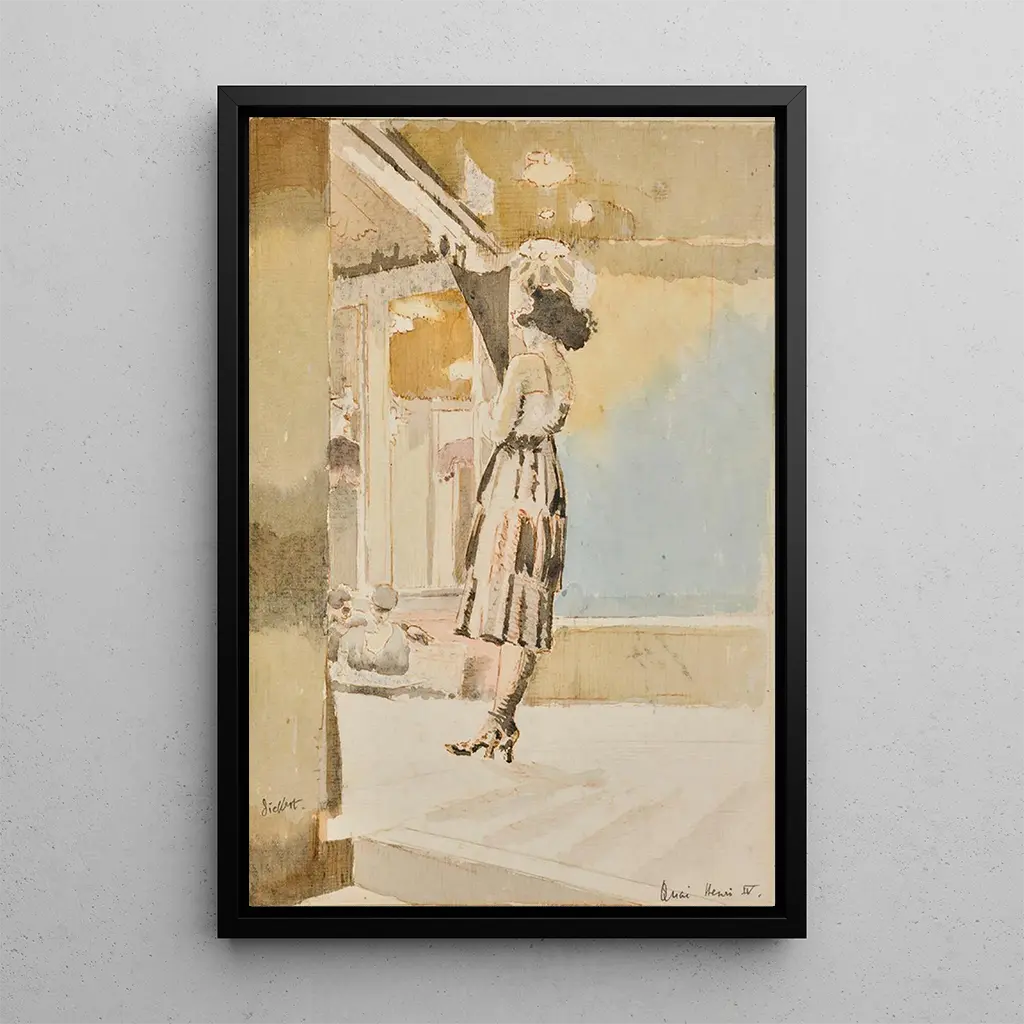 Walter Richard Sickert, artista britannico attivo alla fine del XIX secolo e all'inizio del XX, è stato un protagonista chiave del movimento impressionista. Influenzato da maestri come Degas e Manet, ha saputo sviluppare uno stile unico, combinando realismo e atmosfera impressionista. Le sue opere, spesso incentrate su scene di vita quotidiana, testimoniano una profonda comprensione dell'urbanità e della psicologia umana. Sickert ha anche svolto un ruolo nell'evoluzione dell'arte britannica, introducendo tecniche innovative e dedicandosi a catturare l'essenza stessa dei suoi soggetti.