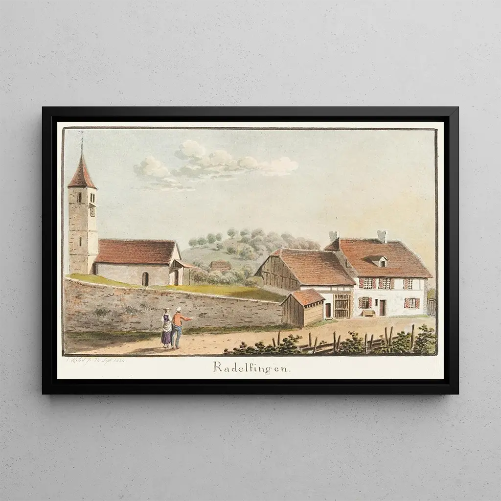 Radelfingen : uno sguardo sulla vita rurale svizzera La stampa d'arte di "Radelfingen" ci immerge in un paesaggio rurale svizzero dove natura e architettura si incontrano armoniosamente. Le tonalità terrose e le sfumature di verde evocano la ricchezza della campagna, mentre i dettagli minuziosi degli edifici aggiungono una dimensione storica alla scena. Jakob Samuel Weibel, con il suo stile realistico, riesce a catturare l'essenza stessa della vita quotidiana in questo villaggio, rendendo omaggio alla bellezza dei paesaggi svizzeri. L'atmosfera pacifica che si sprigiona da questa tela invita alla rêverie e all'evasione. Jakob Samuel Weibel : un testimone del suo tempo Jakob Samuel Weibel, attivo nel XIX secolo, è un artista svizzero le cui opere riflettono la vita rurale della sua epoca. Influenzato dal realismo, ha saputo rappresentare con precisione i paesaggi e le scene della vita quotidiana. Le sue tele testimoniano un profondo rispetto per la natura e la cultura locale, facendone un importante rappresentante dell'arte svizzera. Sebbene meno conosciuto di alcuni dei suoi contemporanei, Weibel ha lasciato un'impronta significativa sull'arte regionale, catturando momenti di semplicità e bellezza. Un acquisto decorativo con molteplici vantaggi La stampa d'arte di "Radelfingen" è un pezzo decorativo che saprà arricchire il vostro interno con il suo fascino rurale. Ideale per un soggiorno, uno studio o una camera da letto, questa tela apporta un tocco di autenticità e serenità al vostro spazio. La qualità della riproduzione garantisce fedeltà ai dettagli e ai colori dell'opera originale, offrendo al contempo un indubbio fascino estetico. Scegliendo questa opera, fate la scelta di una decorazione che evoca la bellezza dei paesaggi svizzeri, creando così un'atmosfera calda e accogliente nella vostra casa.