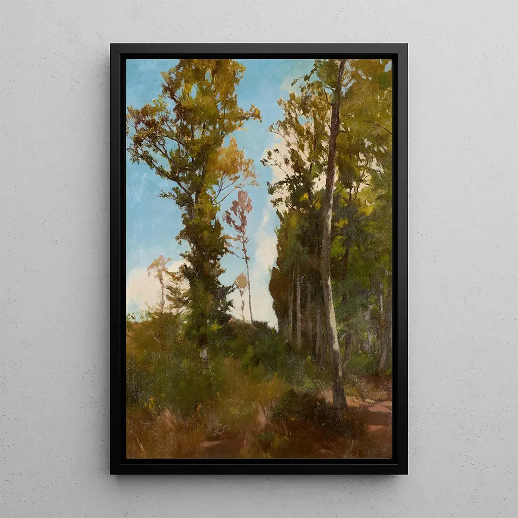 La stampa d'arte de "Clairière près de Purkersdorf" nous plonge dans un paysage serein où la lumière filtre à travers les feuillages denses. Les couleurs, allant des verts profonds aux touches dorées du soleil couchant, créent une atmosphère apaisante et contemplative. La technique de Carl Schuch, qui mêle habilement le réalisme à une touche impressionniste, donne vie à chaque élément de la scène. Les détails minutieux des arbres et la douceur de l'herbe invitent le spectateur à s'immerger dans cette clairière, comme s'il pouvait entendre le murmure du vent et le chant des oiseaux.
