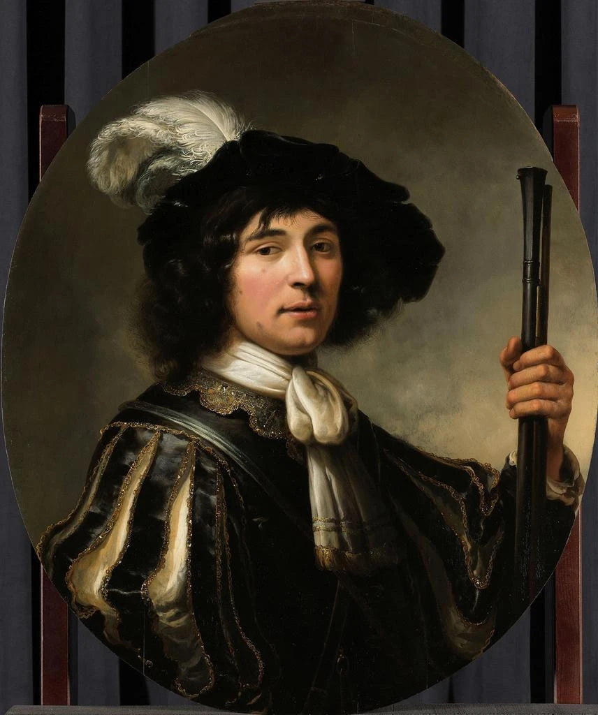Aelbert Cuyp, nato nel 1620 a Dordrecht, è uno dei più grandi pittori dell'età d'oro olandese. La sua opera si distingue per un approccio innovativo al paesaggio e al ritratto, integrando influenze varie che vanno dai maestri fiamminghi alle tradizioni locali. Cuyp ha saputo imporsi grazie alla sua capacità di catturare la luce naturale e di creare atmosfere poetiche, come testimonia questo ritratto. Il suo talento gli ha permesso di costruirsi una reputazione solida e di influenzare numerosi artisti contemporanei e futuri. La chiarezza e la dolcezza del suo stile hanno segnato l’evoluzione del ritratto nel XVII secolo, contribuendo a fare di queste rappresentazioni testimonianze vive dell’umanità. Attraverso la sua opera, Cuyp ci offre una finestra sull’anima umana, rendendo ogni ritratto unico e memorabile.