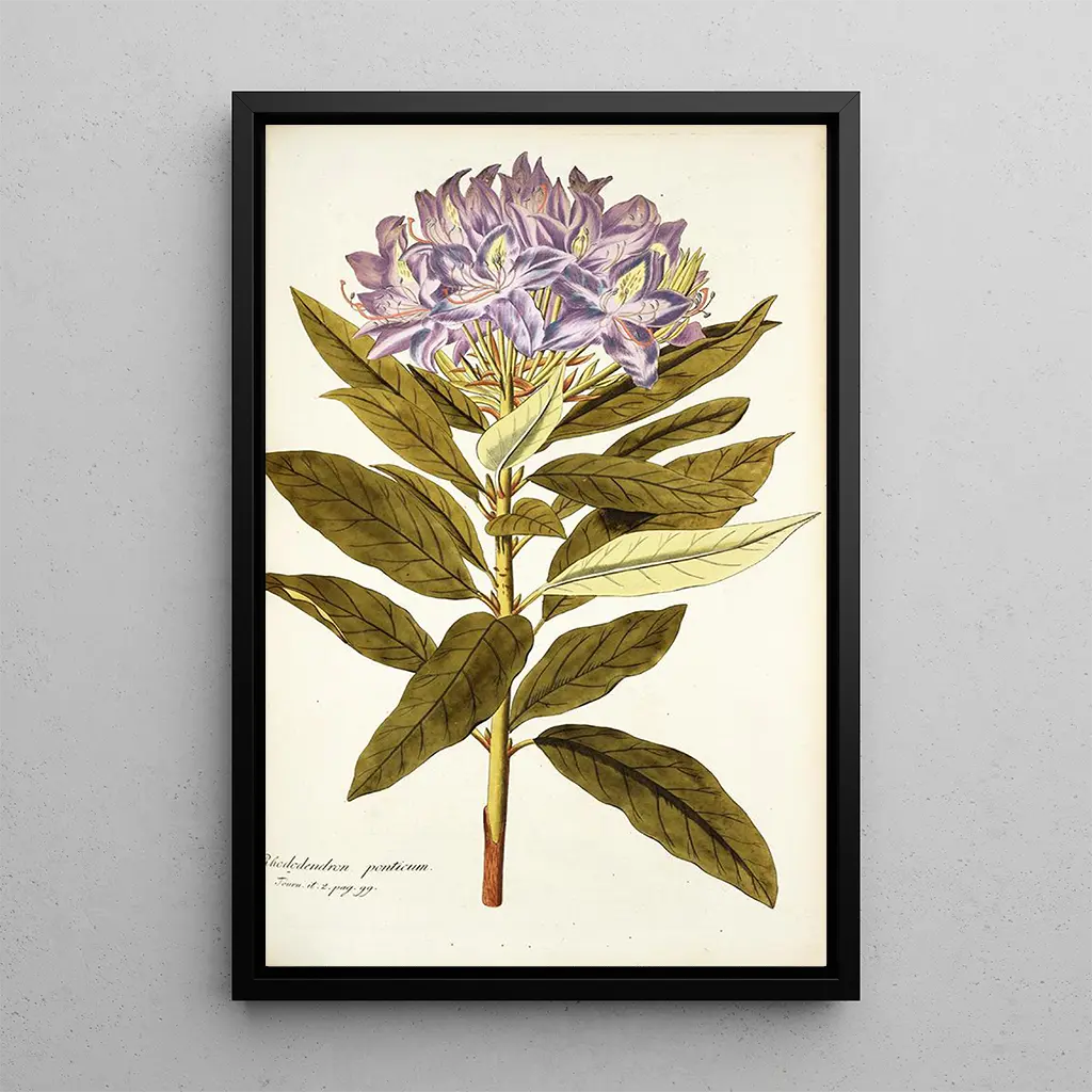 Scegliere la stampa d'arte Rhododendron ponticum significa offrire al vostro interno un tocco di freschezza e colore. Questo quadro, ideale per un soggiorno, uno studio o una camera da letto, porterà un'atmosfera vivace e accogliente. La qualità di stampa garantisce fedeltà ai dettagli dell'opera originale, facendo di questa tela un elemento decorativo di pregio. L'attrattiva estetica di questa stampa d'arte risiede nella sua capacità di trasformare uno spazio, aggiungendo una nota floreale e vibrante. Integrando quest'opera nella vostra decorazione, invitate la bellezza della natura a sbocciare nella vostra casa, celebrando al contempo l'arte botanica.