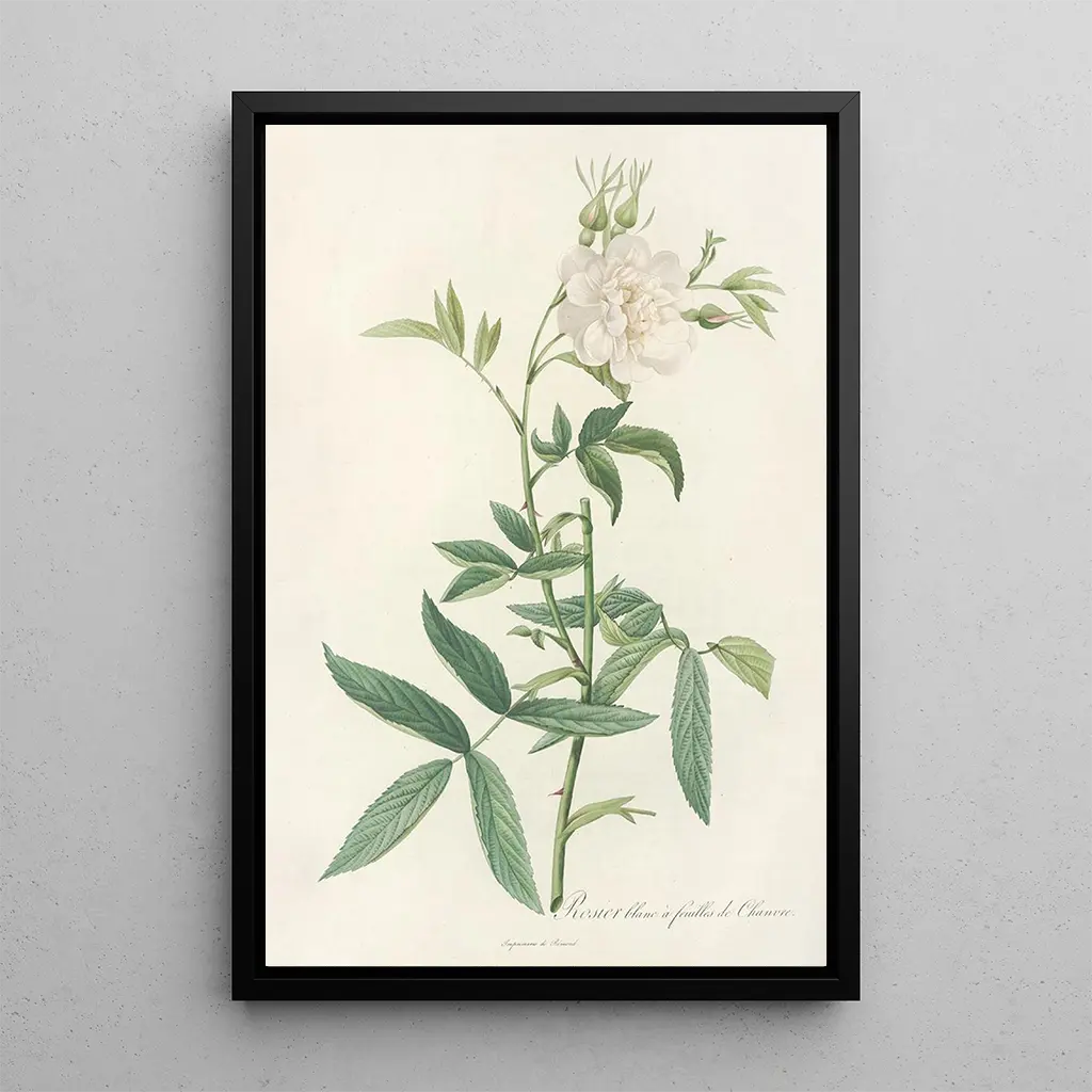 La stampa d'arte di Rosa Alba Cimbaefolia, opera emblematica di Pierre Joseph Redouté, ci invita a scoprire lo splendore delle rose bianche. Questo quadro, con le sue tonalità delicate e le forme raffinate, evoca una sensazione di purezza e serenità. La tecnica dell'acquerello, utilizzata con maestria da Redouté, rende omaggio alle sottigliezze dei petali e delle foglie, creando un'atmosfera rilassante. Ogni dettaglio è lavorato con cura, testimonianza dell'amore dell'artista per la natura e del suo desiderio di catturare la bellezza effimera dei fiori.