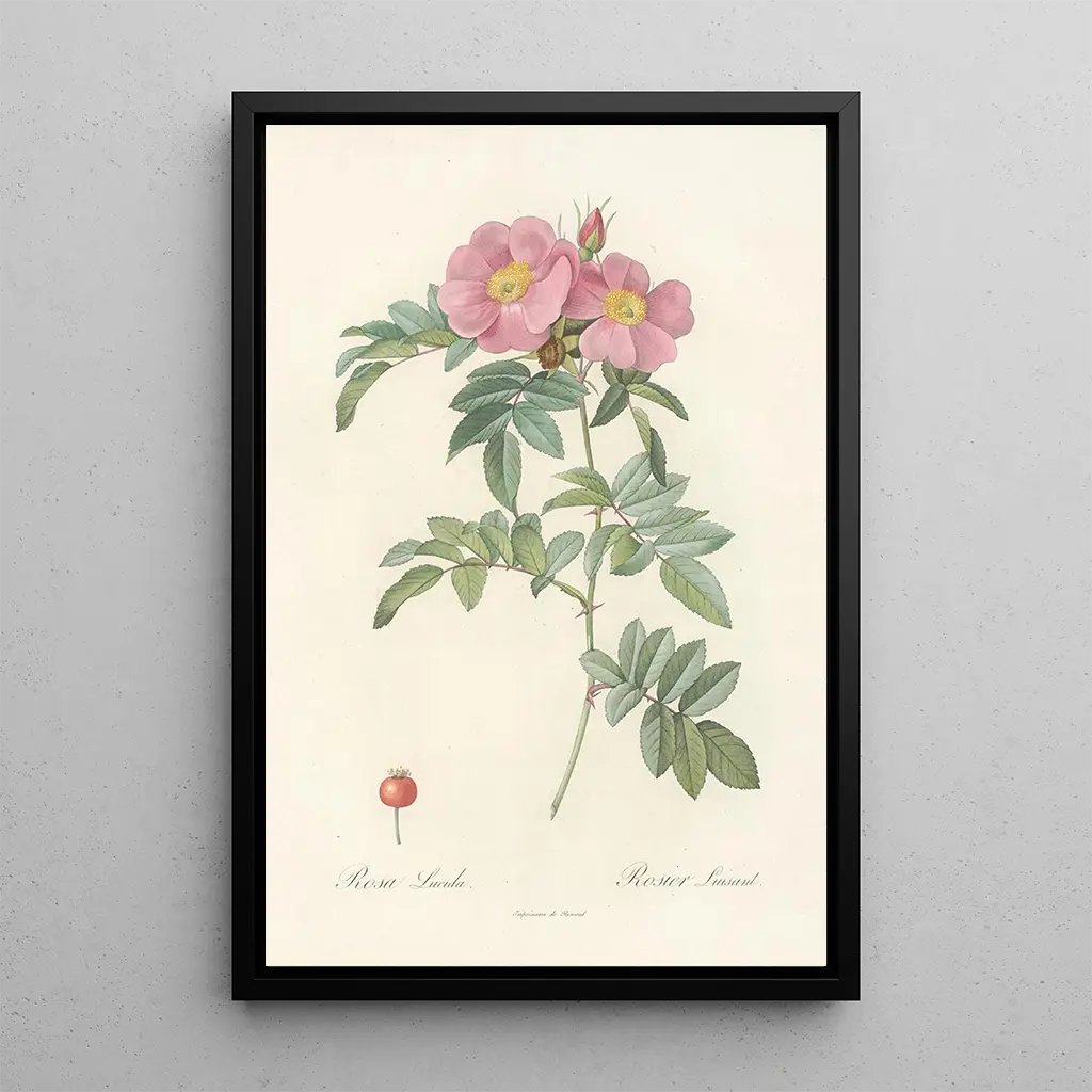 Rosa Lucida, opera emblematica di Pierre Joseph Redouté, evoca una grazia senza tempo attraverso i suoi petali delicatamente dipinti. La composizione mette in risalto sfumature di rosa e di verde, creando un'armonia visiva che cattura immediatamente lo sguardo. La tecnica della gouache, padroneggiata dall’artista, permette di riprodurre con precisione le texture e i riflessi della luce sui fiori. L’atmosfera che si percepisce da questa tela è allo stesso tempo serena e affascinante, invitando a una contemplazione prolungata della bellezza naturale.