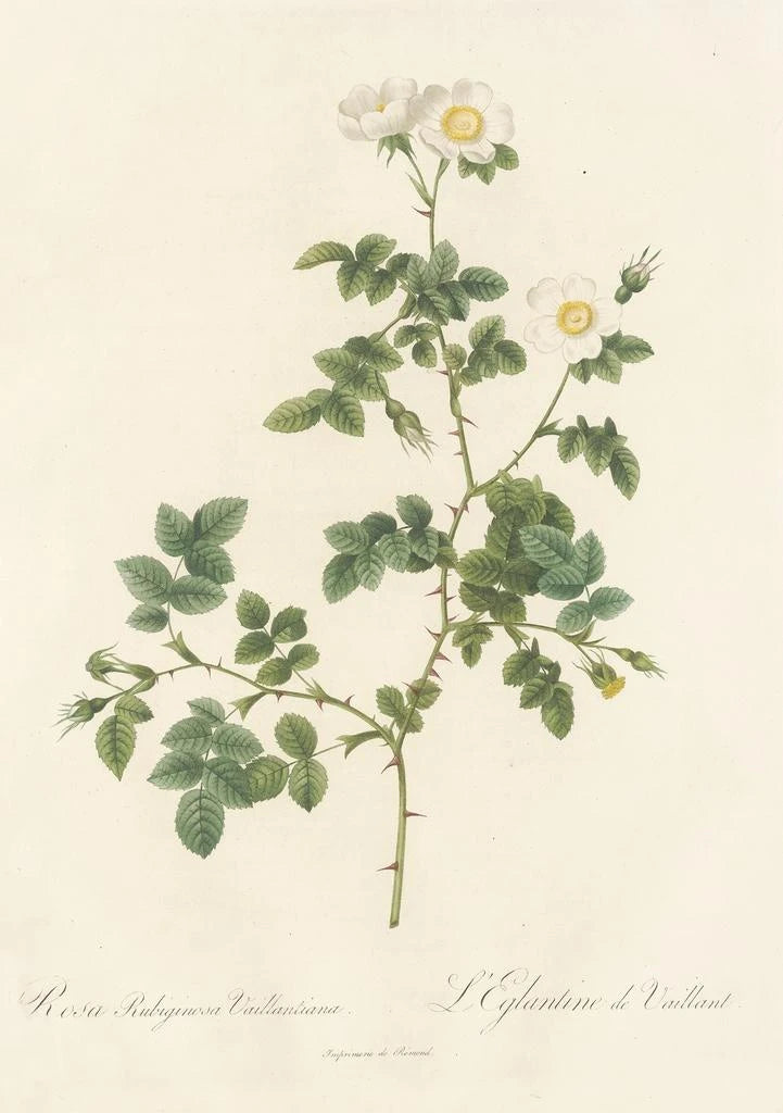 La stampa d'arte di Rosa Rubiginosa Vaillantiana ci trasporta in un giardino rigoglioso dove la bellezza dei fiori si esprime con una delicatezza infinita. Le sfumature di rosa e di verde si mescolano armoniosamente, creando una composizione visiva rilassante. Grazie alla tecnica dell'acquarello, Pierre Joseph Redouté riesce a catturare la luce e la texture dei petali, dando vita a questa opera botanica. L'atmosfera che si percepisce da questa tela è intrisa di dolcezza, invitando a una pausa contemplativa nel cuore della natura.