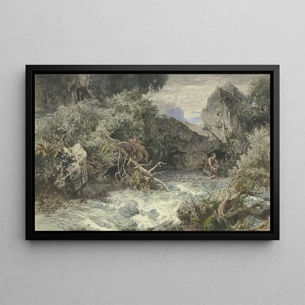 Reproduction Ruisseau sauvage avec ermite : une harmonie entre nature et solitude