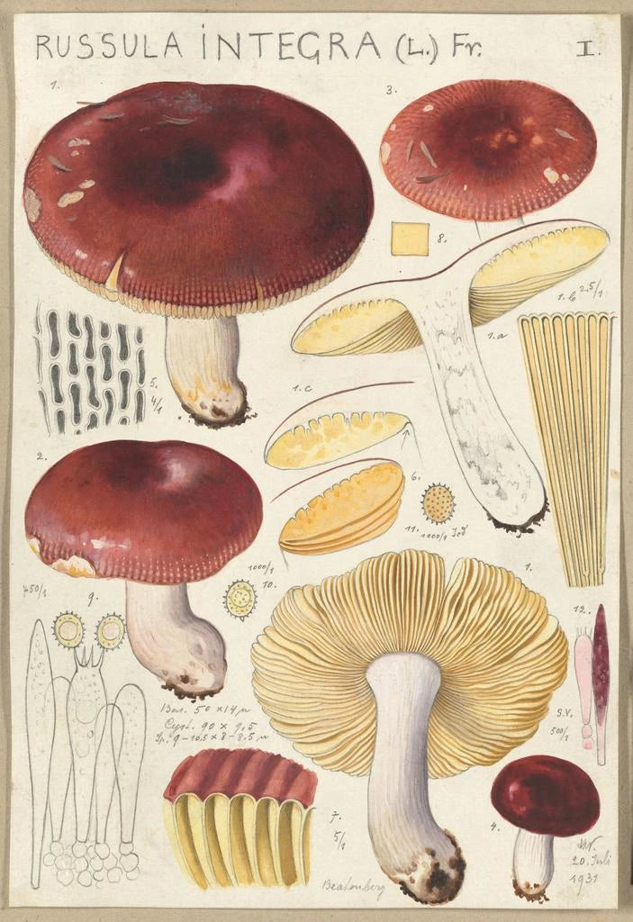 Hans Baldung, anche conosciuto come Hans Baldung Grien, è una figura emblematica del Rinascimento tedesco. Attivo all'inizio del XVI secolo, è stato influenzato da Albrecht Dürer e ha saputo sviluppare uno stile unico, mescolando elementi fantastici e realistici. Baldung è particolarmente riconosciuto per le sue rappresentazioni della natura e dei temi mitologici, che rivelano una profonda comprensione dell'armonia tra l'uomo e il suo ambiente. La sua opera, ricca di simbolismo, testimonia le preoccupazioni della sua epoca, in particolare l'interesse crescente per la botanica e la scienza. Russula integra si inserisce perfettamente in questa tradizione, celebrando la bellezza dei funghi e riflettendo lo spirito di un'epoca in piena trasformazione.