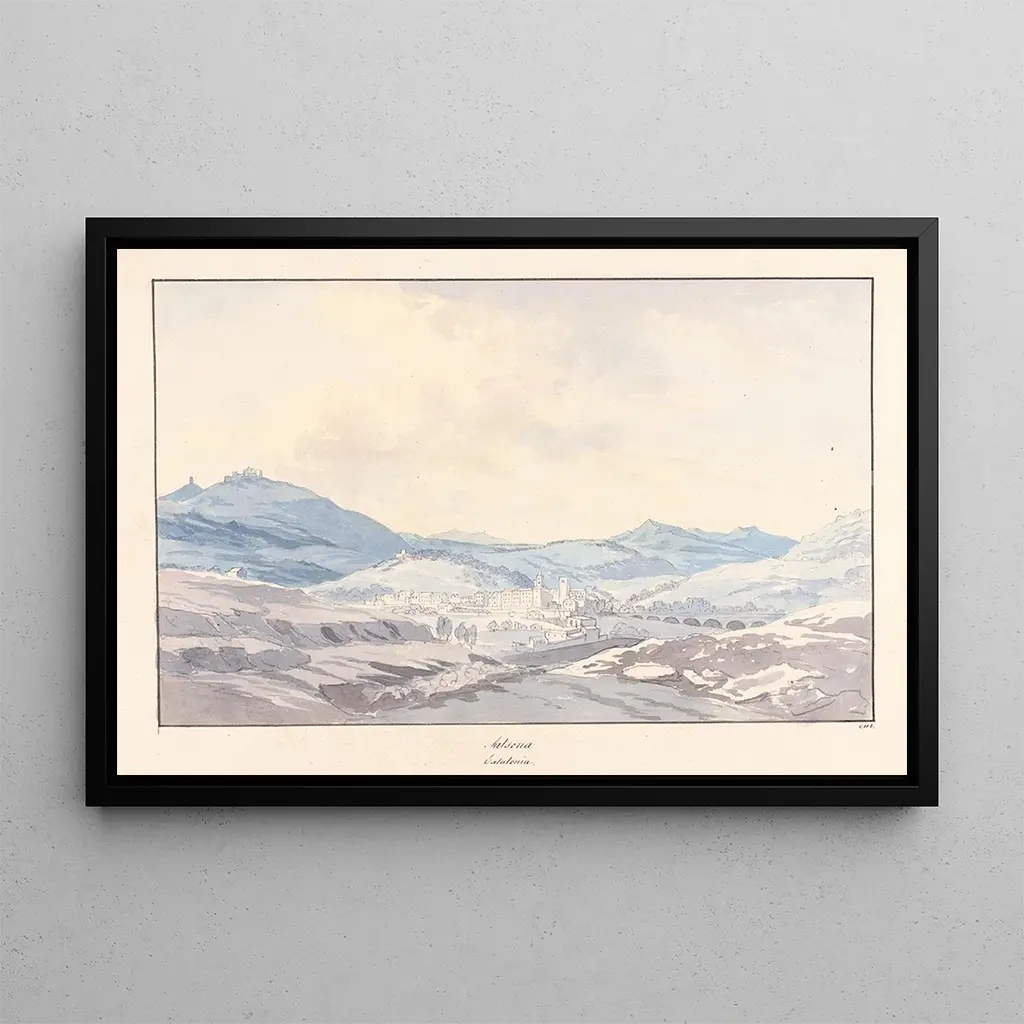 Fonte: Catalogna di Salsona: un quadro vibrante di vita e luce La stampa d'arte Catalogna di Salsona di Charles Hamilton Smith ci trasporta nel cuore di un paesaggio pittoresco, dove la natura fiorisce in una tavolozza di colori vivaci. Le tonalità verdi delle colline si mescolano alle sfumature dorate del tramonto, creando un'atmosfera calda e accogliente. La tecnica dell'acquarello, padroneggiata dall'artista, permette di catturare la fluidità dell'acqua e la leggerezza delle nuvole. Ogni colpo di pennello sembra raccontare una storia, invitando lo spettatore a immergersi in questa scena bucolica, dove il tempo sembra essersi fermato. Charles Hamilton Smith: un testimone della sua epoca Charles Hamilton Smith, attivo all'inizio del XIX secolo, è riconosciuto per le sue opere che combinano precisione scientifica e sensibilità artistica. Influenzato dai paesaggi britannici e dai viaggi in Europa, ha saputo catturare la bellezza dei luoghi con una finezza notevole. Le sue opere, spesso ispirate dalla natura, testimoniano un interesse crescente per l'osservazione dei paesaggi e delle scene della vita quotidiana. In qualità di artista e illustratore, Smith ha svolto un ruolo chiave nello sviluppo dell'acquarello come forma d'arte a sé stante, lasciando il suo segno nella storia dell'arte. Una riproduzione decorativa con molteplici vantaggi La riproduzione del quadro Catalogna di Salsona è un pezzo decorativo ideale per abbellire il tuo soggiorno, ufficio o camera da letto. La sua qualità di stampa fedele e i suoi colori vivaci portano un tocco di freschezza e serenità nel tuo interno. Scegliendo questa tela, offri al tuo spazio un'atmosfera rilassante, aggiungendo al contempo una dimensione artistica che suscita ammirazione. Questo quadro, vera e propria invito all'evasione, saprà conquistare i tuoi ospiti e arricchire la tua decorazione con eleganza e stile.