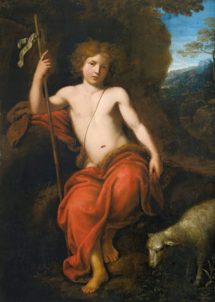 La stampa d'arte di San Giovanni Battista, opera di Pierre Mignard, evoca la profondità spirituale e la forza del personaggio biblico. Il quadro, con i suoi colori terrosi e i giochi di ombre, mette in luce la fervente religiosità di Giovanni Battista, sottolineando il suo ruolo di precursore del Cristo. La postura dinamica del santo, associata a un'espressione intensa, cattura l'attenzione e invita alla meditazione. Mignard, con la sua maestria tecnica, riesce a creare un'atmosfera sacra, dove ogni dettaglio, dall'abbigliamento agli elementi naturali, contribuisce alla narrazione visiva.