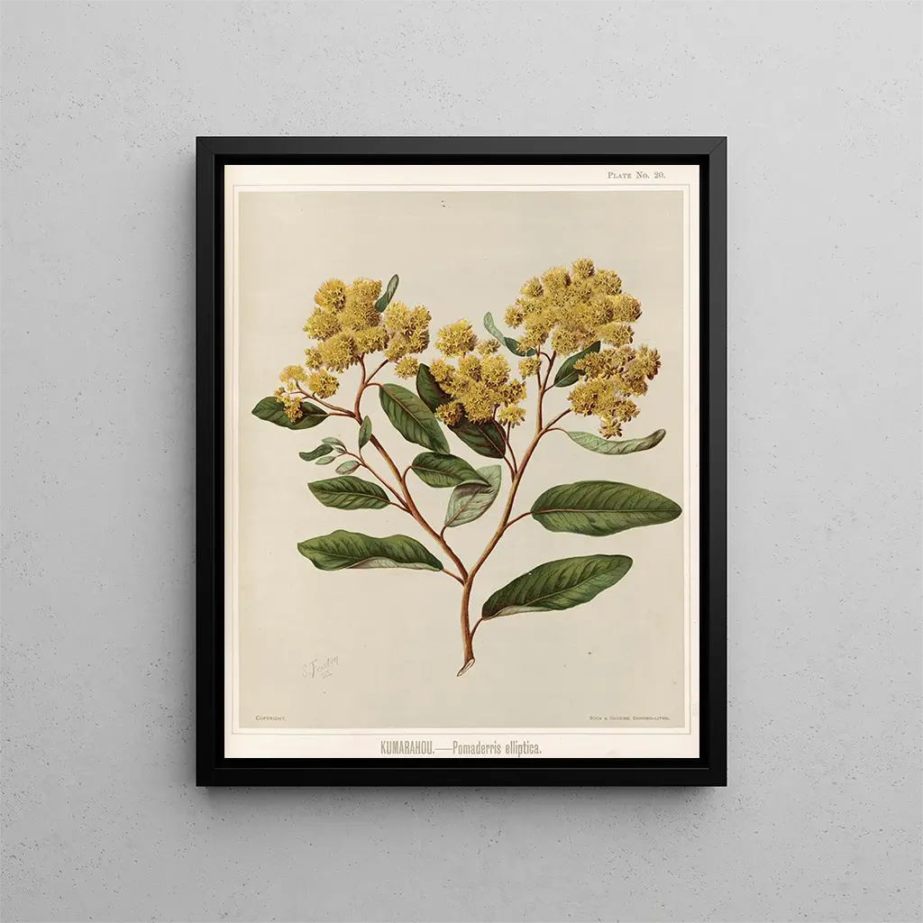 In questa opera, Sarah Featon illustra il Kumarahou, o Pomaderris elliptica, una pianta endemica della Nuova Zelanda. Con un approccio artistico delicato, riesce a catturare i dettagli di questa pianta, dai fiori al fogliame. La precisione di Featon la rende un'artista botanica rispettata, e le sue opere sono diventate pezzi ricercati per la loro capacità di arricchire i nostri spazi vitali. Le illustrazioni di Featon portano un tocco di natura e un'estetica raffinata, integrandosi armoniosamente in diversi stili di decorazione d'interni. Sono ideali per chi cerca di creare un ambiente rilassante e ispirante. Scopri questa opera su Artem Legrand e lasciati conquistare dalla bellezza della flora neozelandese.