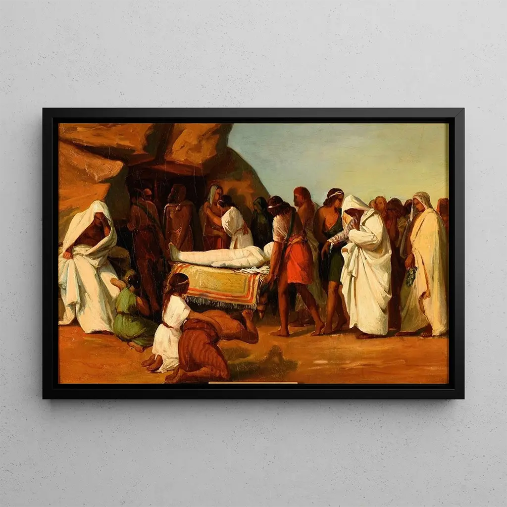 Scène de funérailles : un hommage à la mémoire et à la tradition "Scène de funérailles" de Dominique Louis Papety est une œuvre poignante qui capture le moment solennel du passage. La composition est soigneusement orchestrée, où chaque personnage, vêtu de noir, exprime une émotion profonde à travers des gestes et des regards chargés de sens. Les couleurs sombres dominent, créant une atmosphère de recueillement, tandis que des touches de lumière viennent souligner les visages empreints de tristesse. La technique de Papety, mêlant réalisme et romantisme, donne vie à cette scène, invitant le spectateur à réfléchir sur la fragilité de la vie et l'importance des rituels de deuil. Dominique Louis Papety : un témoin de son époque Dominique Louis Papety, pittore francese del XIX secolo, è conosciuto per le sue rappresentazioni di scene storiche e ritratti. Il suo stile si distingue per una grande padronanza del disegno e una capacità di catturare le emozioni umane. Influenzato dal neoclassicismo, Papety si interessa ai temi della memoria e della tradizione, come testimonia "Scène de funérailles". Quest'opera, che si inserisce in un contesto in cui il lutto e la memoria collettiva sono temi di preoccupazione, riflette i valori e i sentimenti della sua epoca, rimanendo allo stesso tempo molto moderna. Una riproduzione decorativa con molteplici vantaggi La riproduzione di "Scène de funérailles" è un pezzo d'arte che apporterà una profondità emotiva alla vostra decorazione d'interni. Che si trovi in un soggiorno, in uno studio o in una camera da letto, questa tela saprà suscitare riflessioni e scambi. La qualità della stampa garantisce una fedeltà alle sfumature e ai dettagli dell'opera originale, permettendo di percepire tutta la potenza di questa scena. Integrando questo quadro nel vostro spazio, scegliete una decorazione che non si limiti all'estetica, ma che inviti anche alla contemplazione e alla memoria, arricchendo così il vostro ambiente.