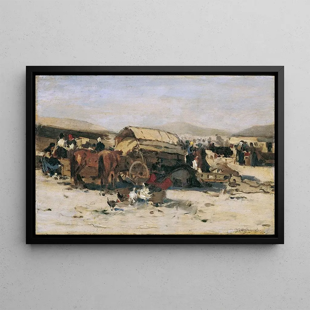La stampa d'arte di "Scène de marché hongrois" ci immerge nell'effervescenza di un mercato tradizionale, dove i colori vivaci e i personaggi animati si mescolano per creare un'atmosfera vibrante. I dettagli minuziosi degli abiti folkloristici e degli espositori di frutta e verdura testimoniano un savoir-faire artistico eccezionale. Ogni colpo di pennello sembra catturare il movimento e l'energia di questo momento, invitando lo spettatore a percepire il calore e l'autenticità della vita quotidiana in Ungheria. Quest'opera è una vera celebrazione della cultura locale, ricca di colori ed emozioni.