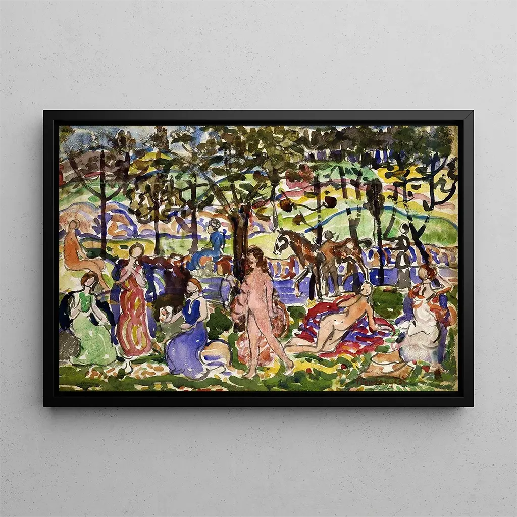 Scène de parc : un'evasione bucolica nel cuore della natura La stampa d'arte di Scène de parc di Maurice Prendergast evoca un'atmosfera di serenità e gioia. I colori vivaci e luminosi, tipici dell'artista, immergono lo spettatore in un universo in cui natura e umanità coesistono armoniosamente. I tocchi di pittura, applicati con leggerezza, creano un movimento fluido, come se il vento accarezzasse le foglie degli alberi. I personaggi, spesso rappresentati in pose rilassate, sembrano godersi un momento di riposo, invitando alla contemplazione e all'evasione. Questa tela, ricca di vita, cattura l'essenza di una giornata soleggiata, dove il parco diventa un luogo di incontro e condivisione. Maurice Prendergast : un pioniere del post-impressionismo americano Maurice Prendergast, attivo alla fine del XIX secolo e all'inizio del XX secolo, è riconosciuto come uno dei maestri del post-impressionismo americano. Influenzato dai movimenti europei, in particolare dal Fauvismo, sviluppa uno stile unico, caratterizzato da colori vivaci e composizioni dinamiche. Prendergast ha spesso esplorato i temi della vita urbana e del tempo libero, catturando lo spirito della sua epoca. Le sue opere, come la stampa d'arte di Scène de parc, testimoniano una sensibilità alla bellezza dei momenti semplici, riflettendo al contempo i cambiamenti sociali e culturali del suo tempo. Il suo lascito perdura, ispirando molti artisti contemporanei. Un acquisto decorativo con molteplici vantaggi La stampa d'arte di Scène de parc è un pezzo decorativo ideale per aggiungere un tocco di freschezza e colore alla vostra casa. Che sia in un soggiorno, in uno studio o in una camera da letto, questa tela attira lo sguardo e suscita emozioni positive. La qualità di stampa garantisce una fedeltà notevole ai dettagli e ai colori originali, permettendo di godere appieno dell'opera di Prendergast. Con il suo fascino estetico, questa stampa d'arte si integra armoniosamente in vari stili di arredamento, dal contemporaneo al classico, rendendola una scelta saggia per arricchire il vostro spazio vitale.