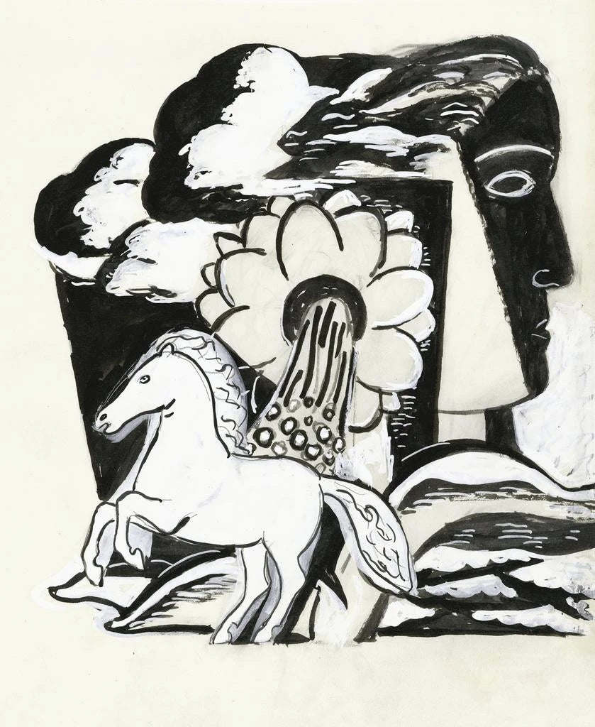 Schizzo di fiore e di testa di cavallo alzato - Leo Gestel
